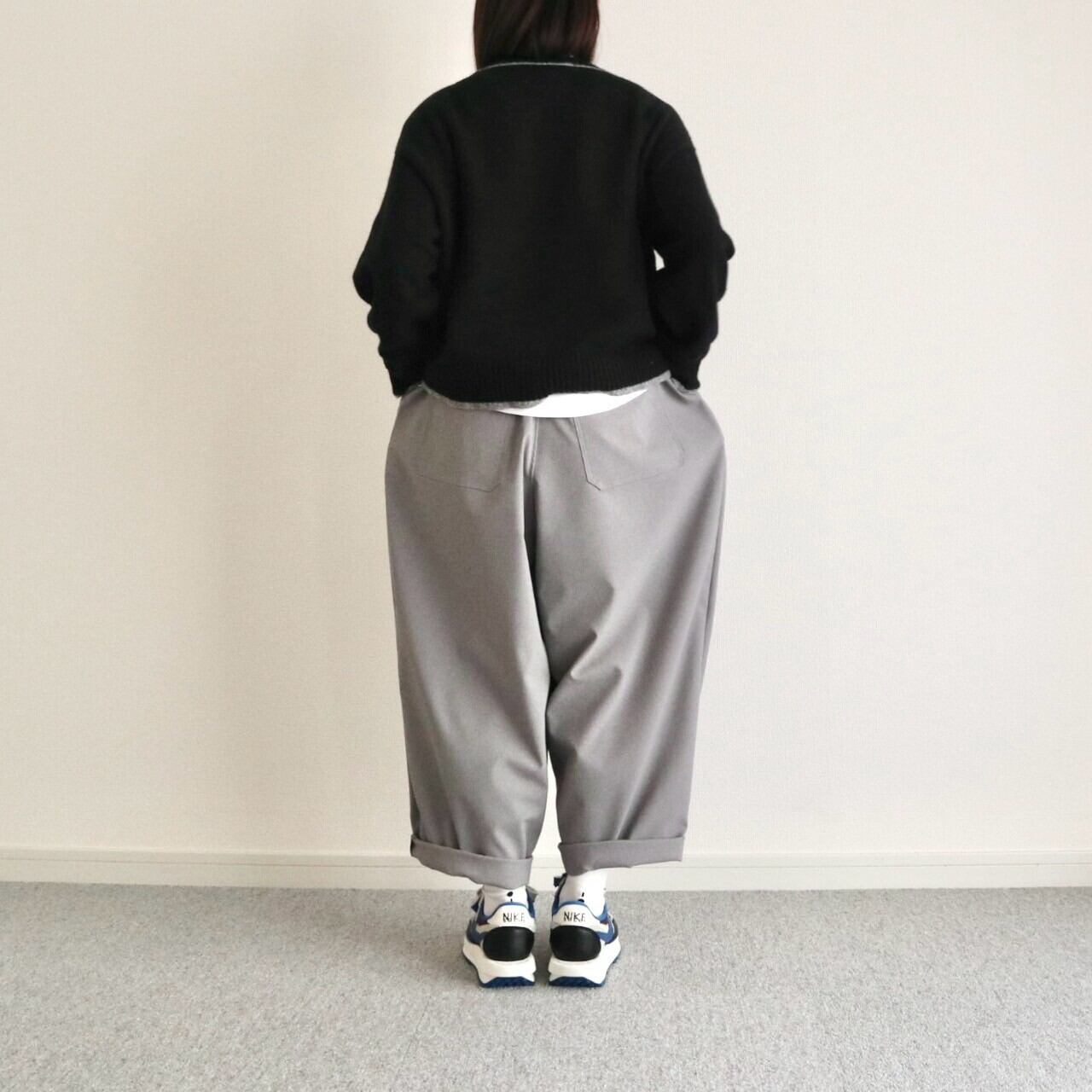 ・ウエスト後ろはゴム使用、前はスッキリとしており、トップスをタックインしてもごわつきにくいです。