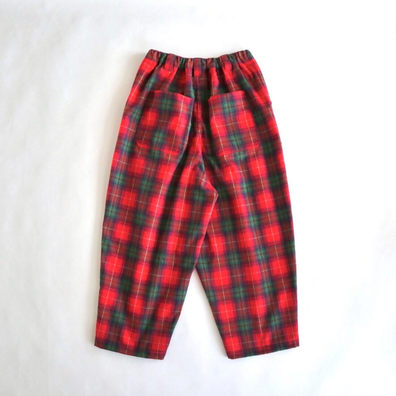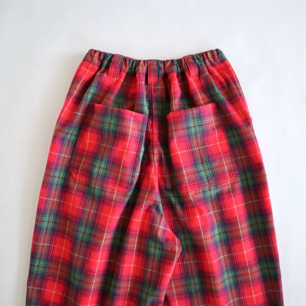 【11月下旬までにお届け】nancoinancoi 2 tuck tapered loose fit brushed check pants / red