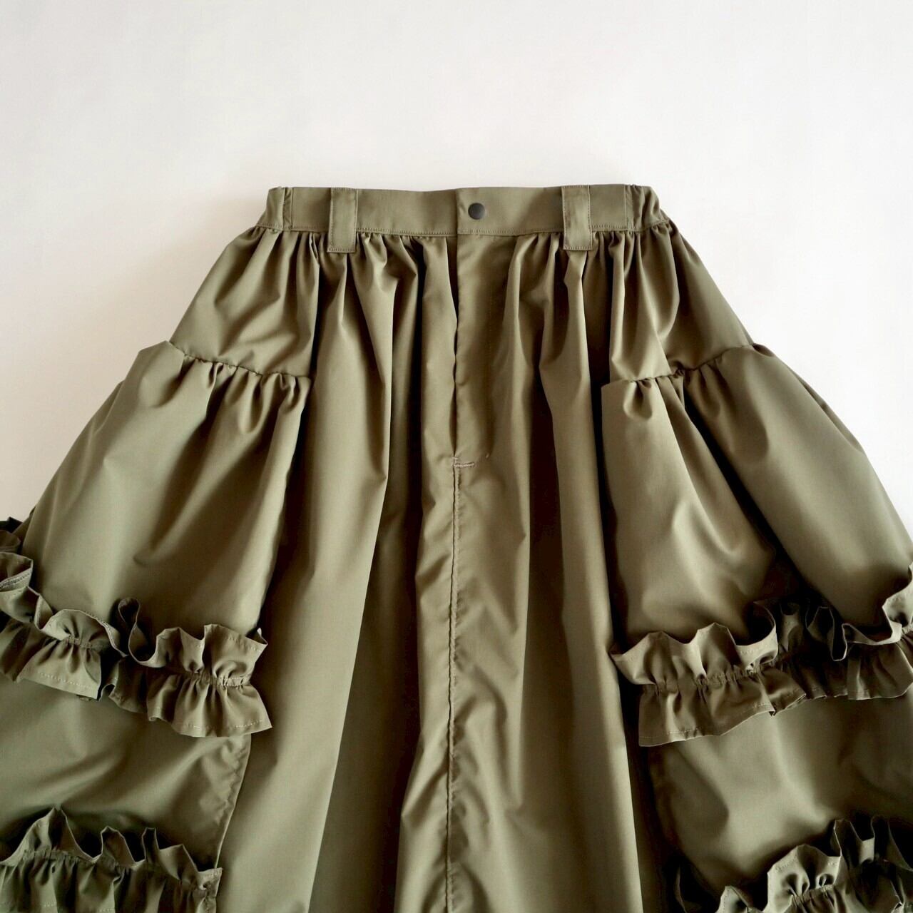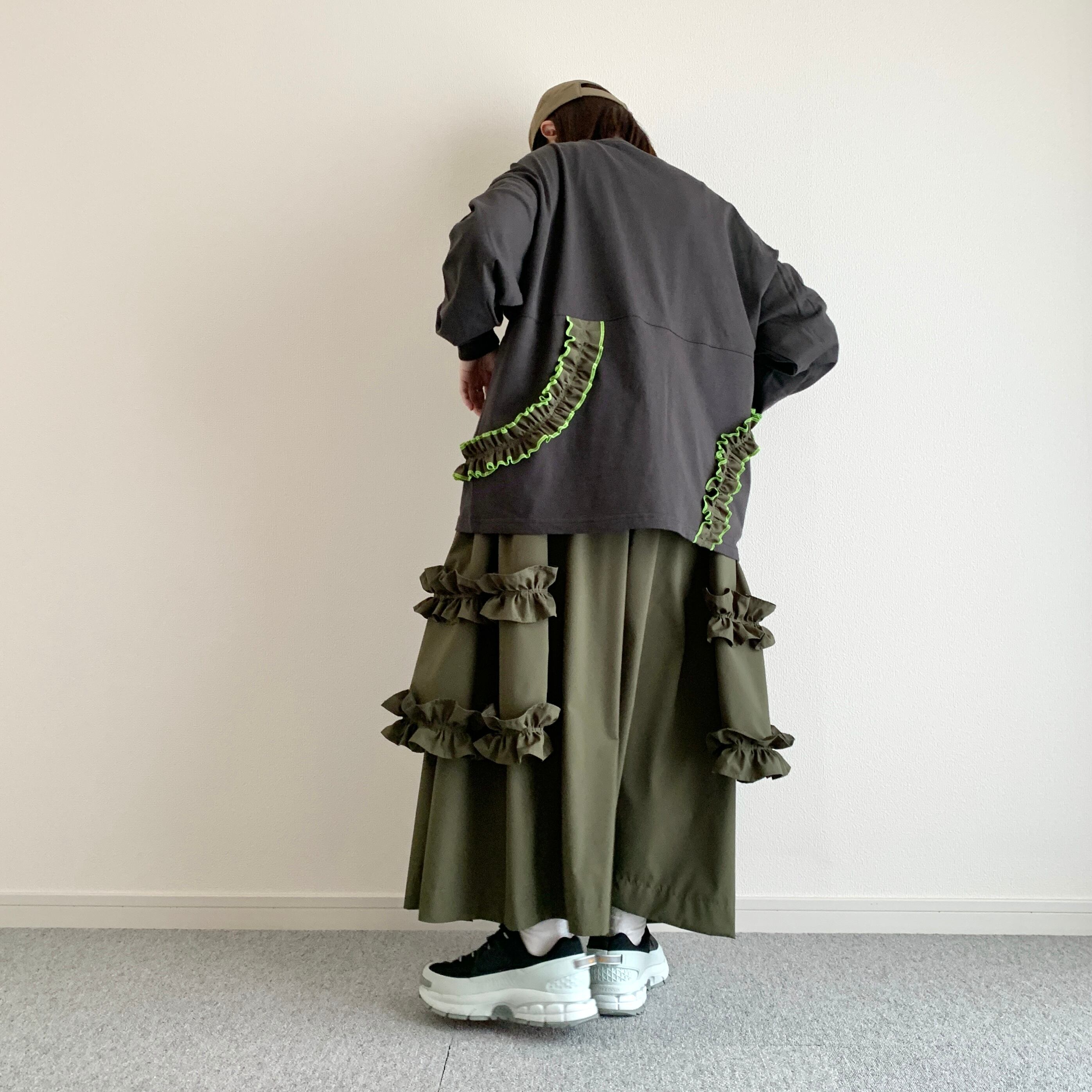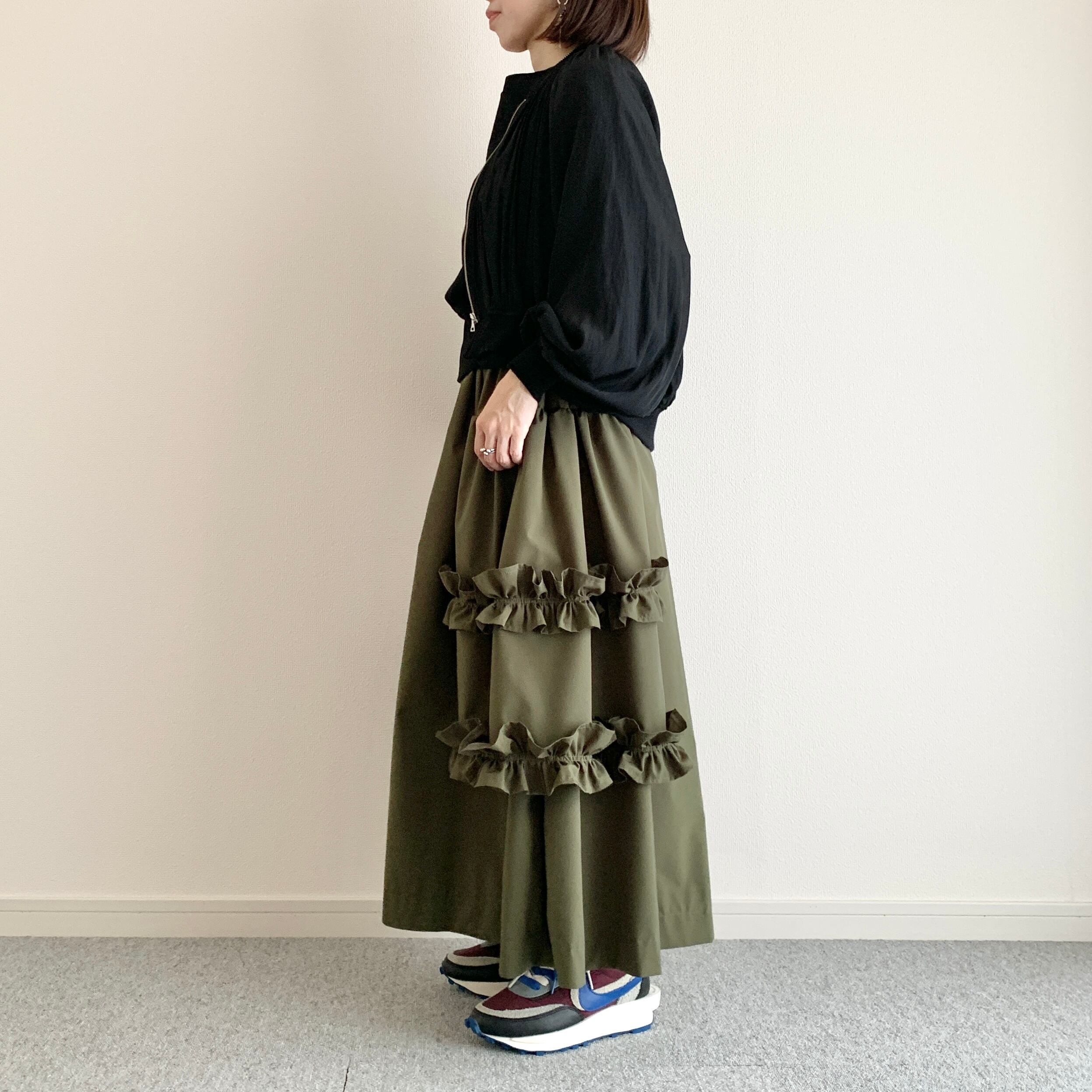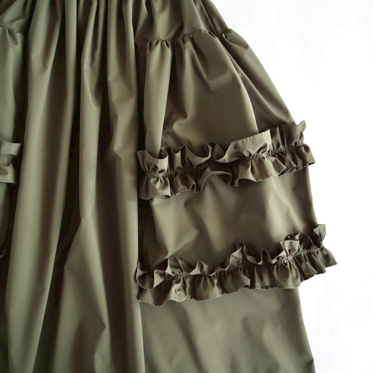 ギャザースカートに共布でフリルがついたパーツを更にドッキングしました。