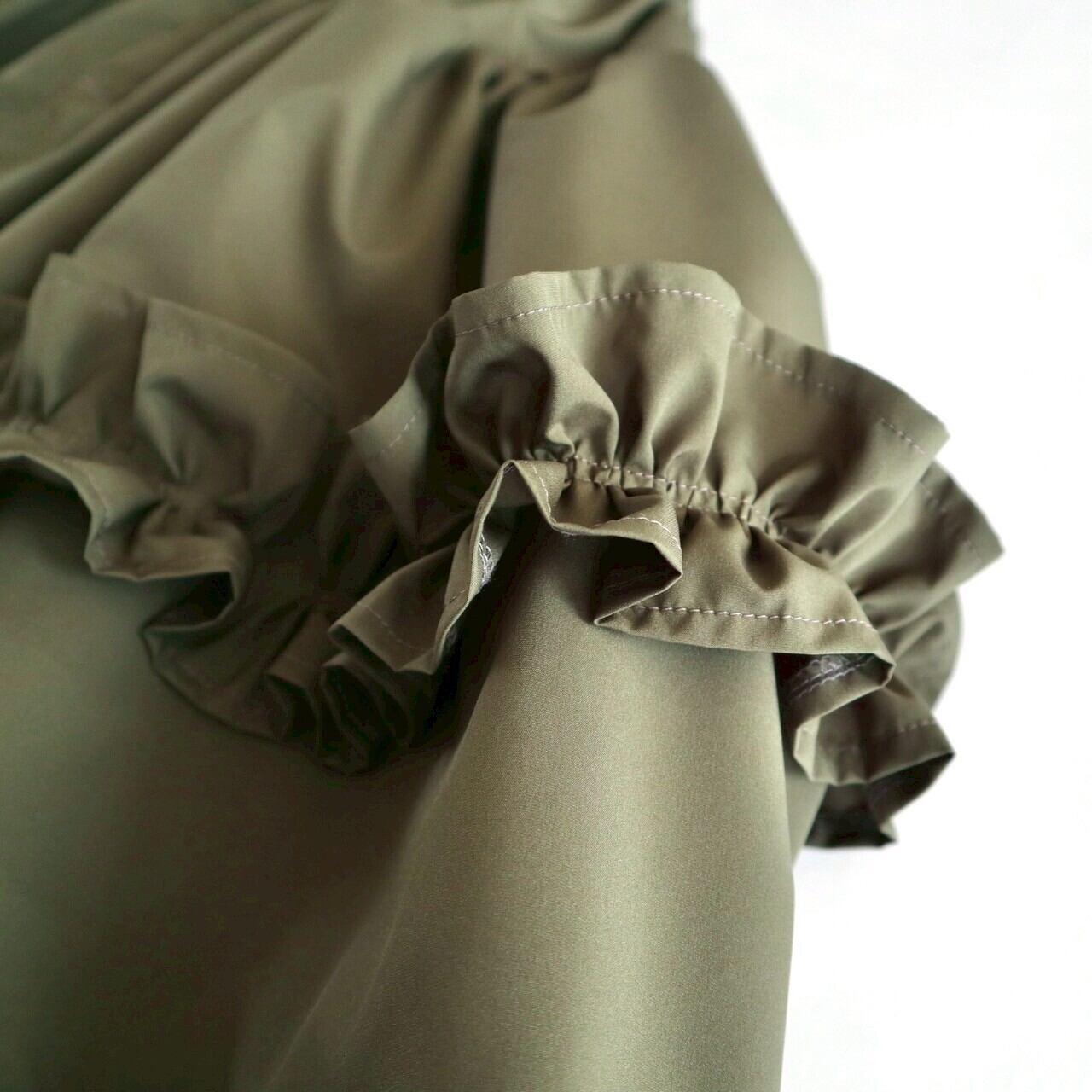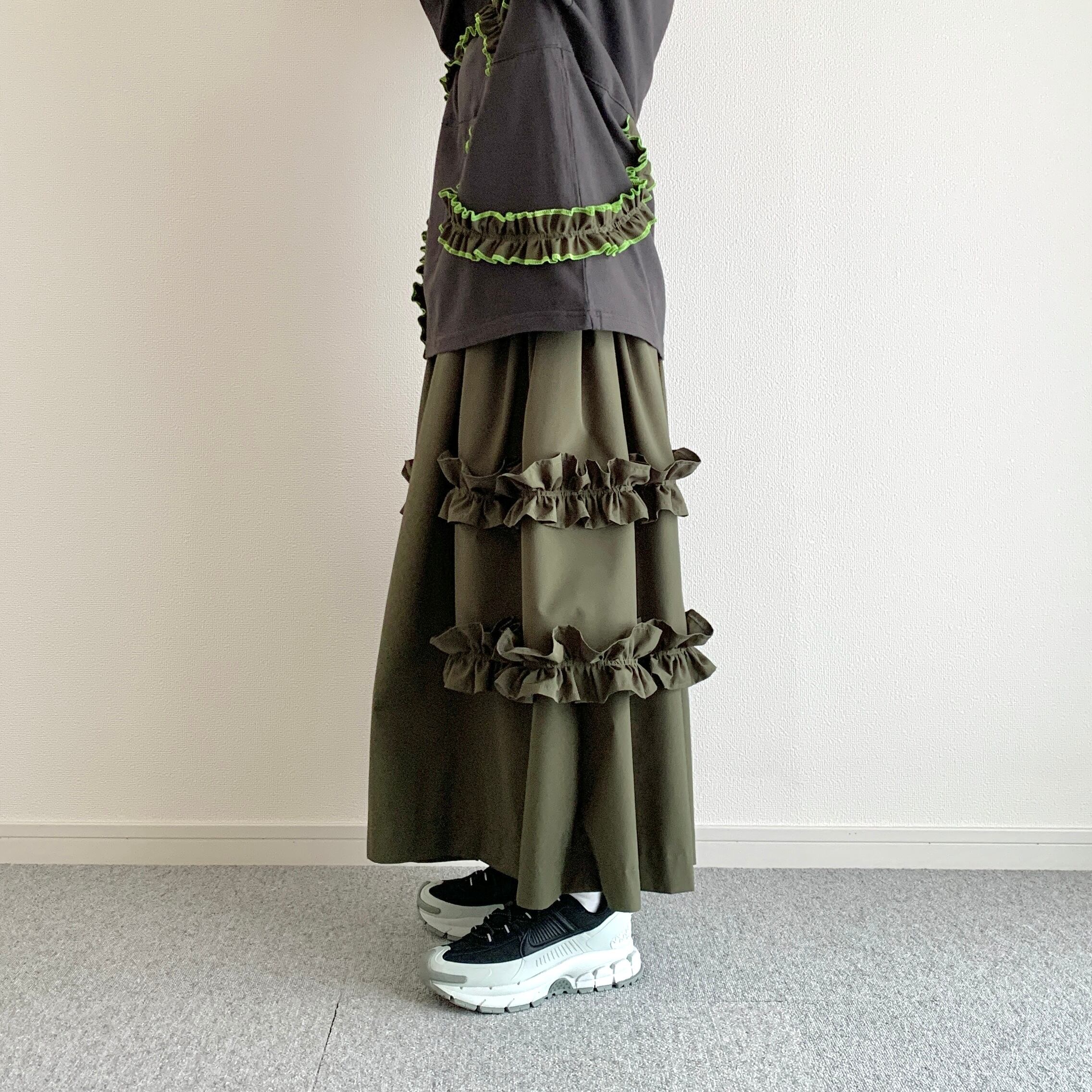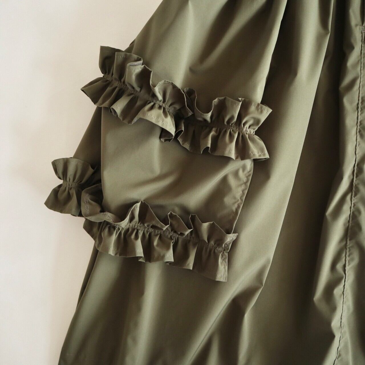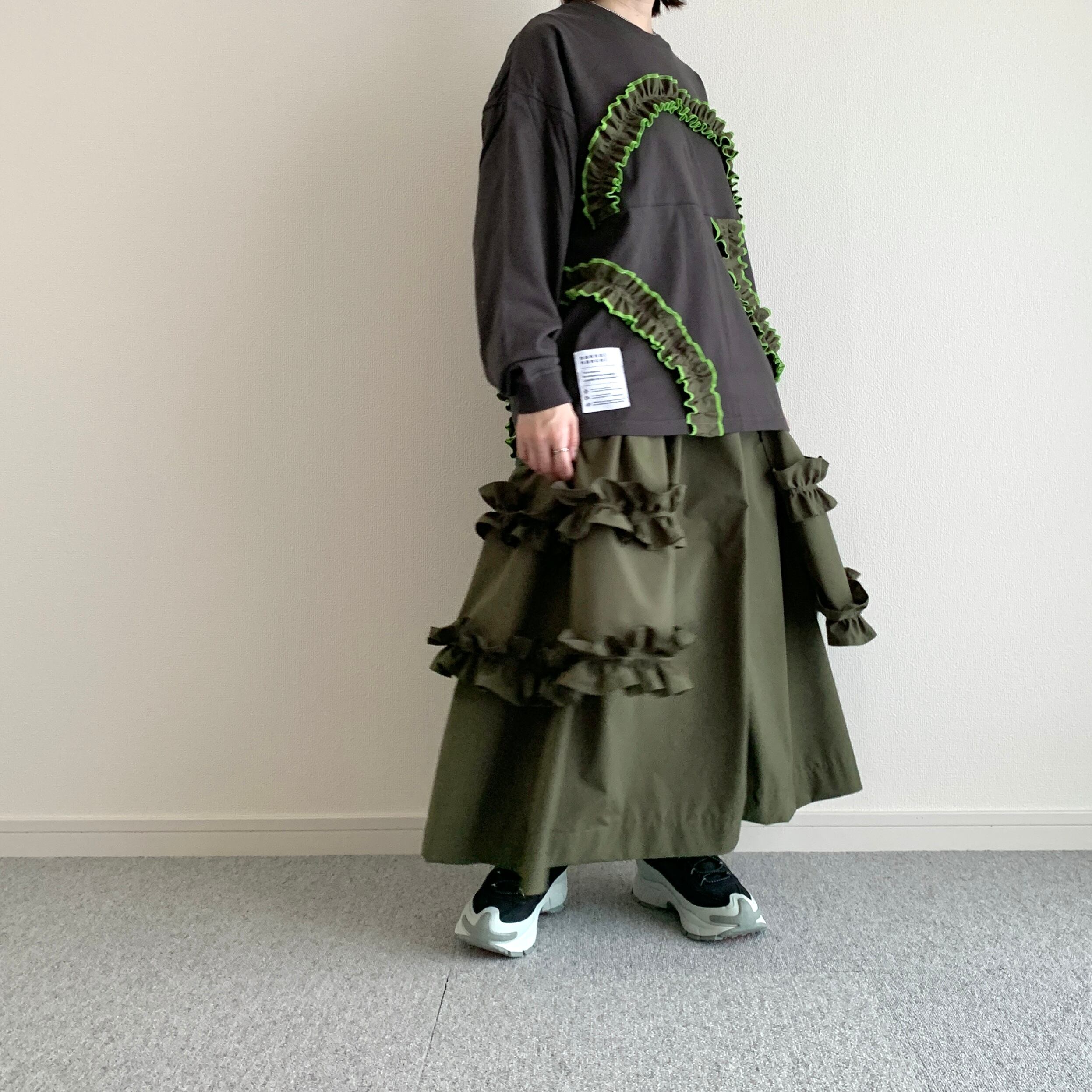 ギャザースカートに共布でフリルがついたパーツを更にドッキングしました。