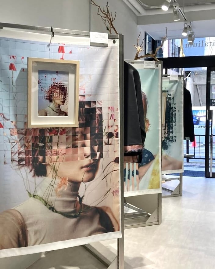店主ひろあきが製作したコラージュを生地にして