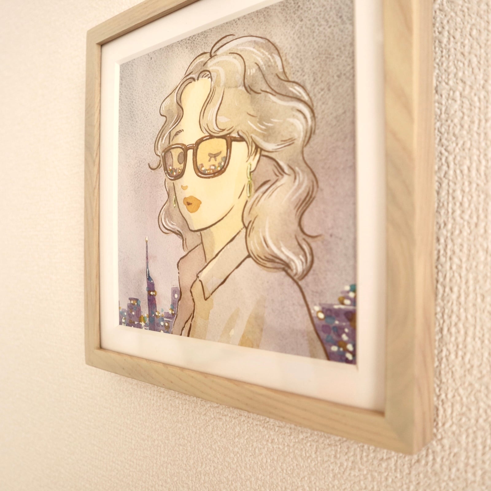 額のサイズ(200mm × 200mm) / 画用紙、透明水彩、アクリルガッシュ