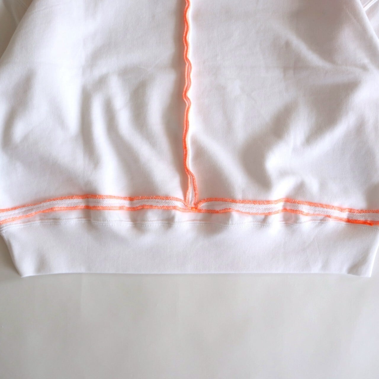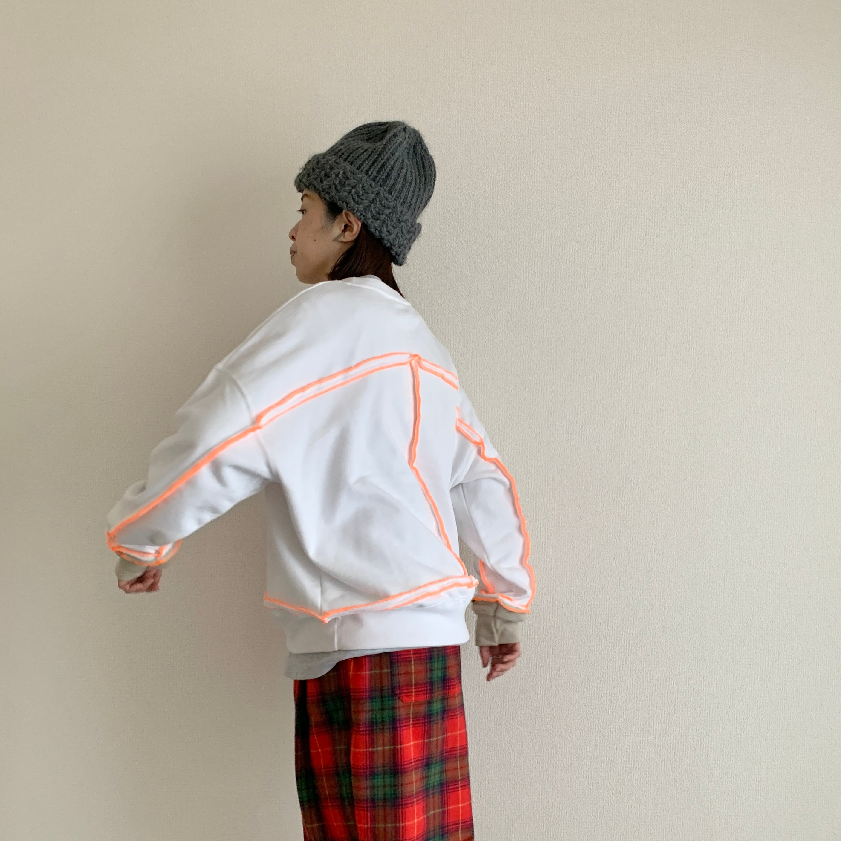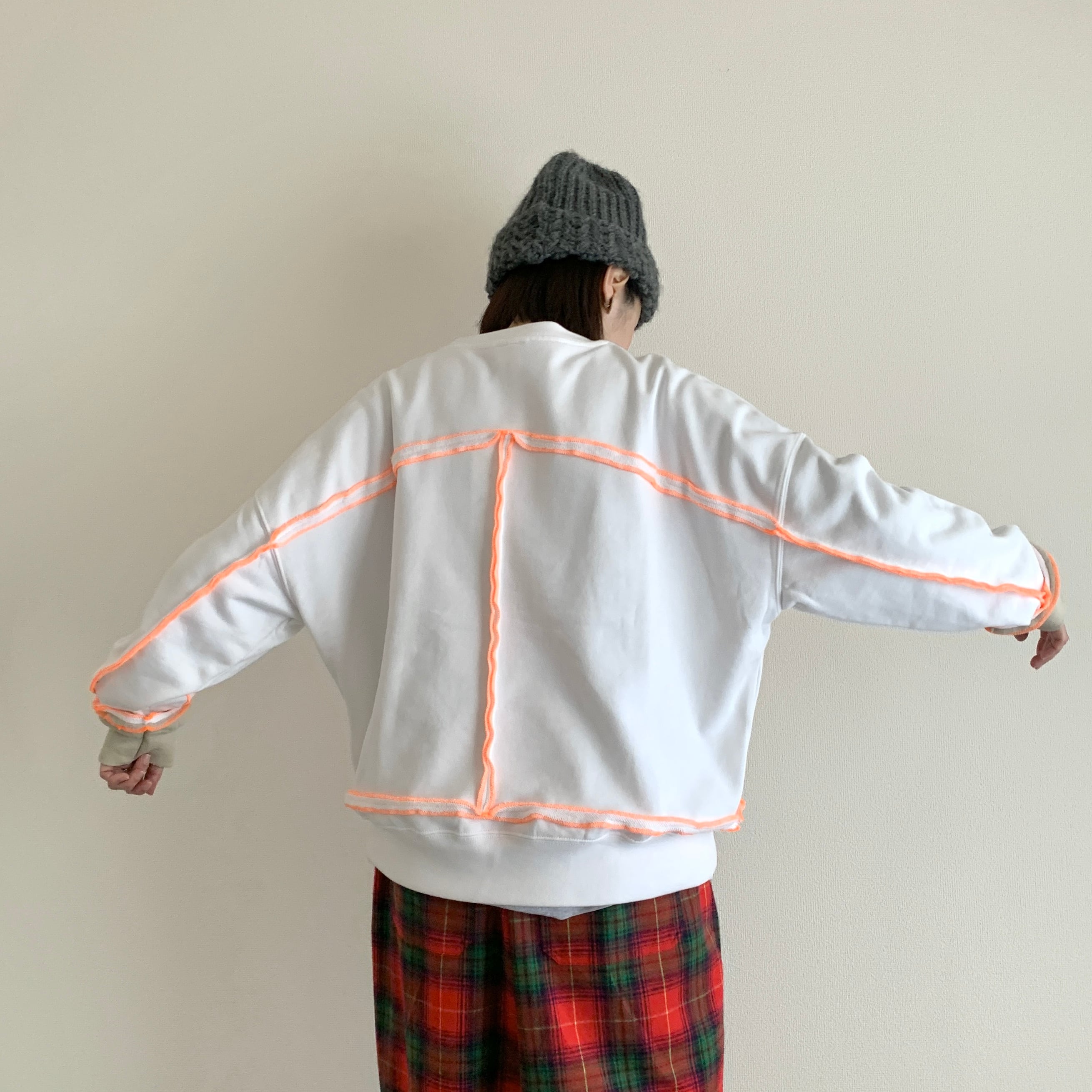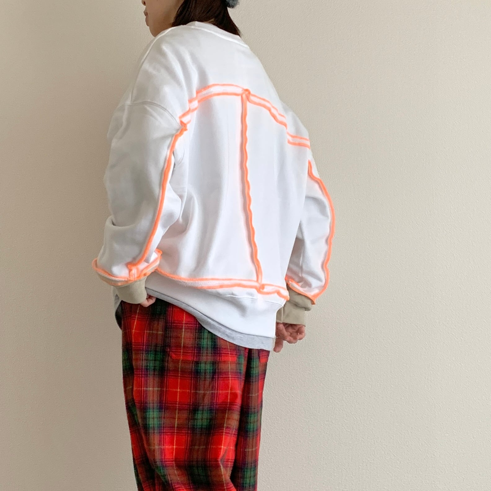 白いボディのスウェットは身幅広めのワイドシルエット。