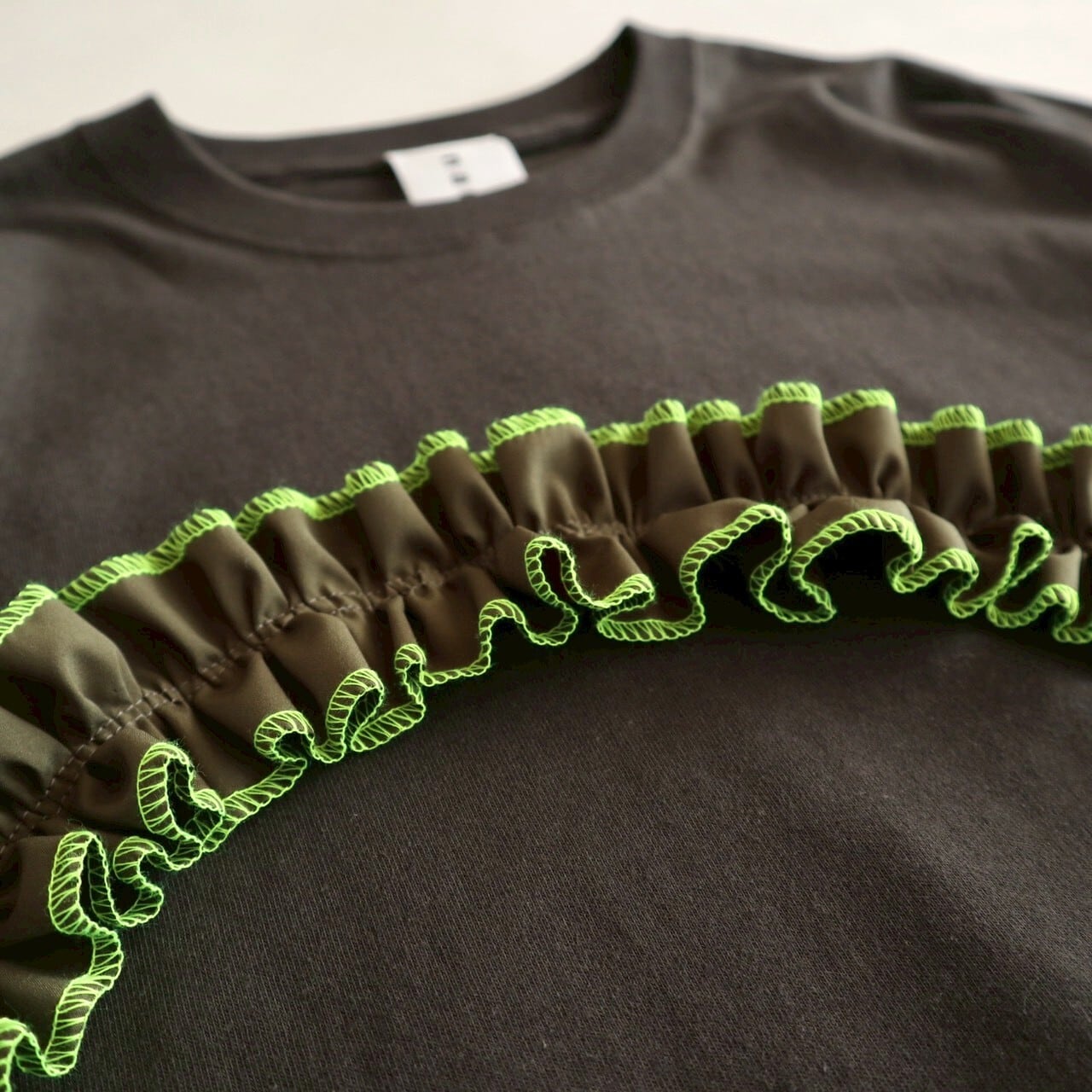 フリル部分のロックミシンステッチもネオンカラーでアクセント。