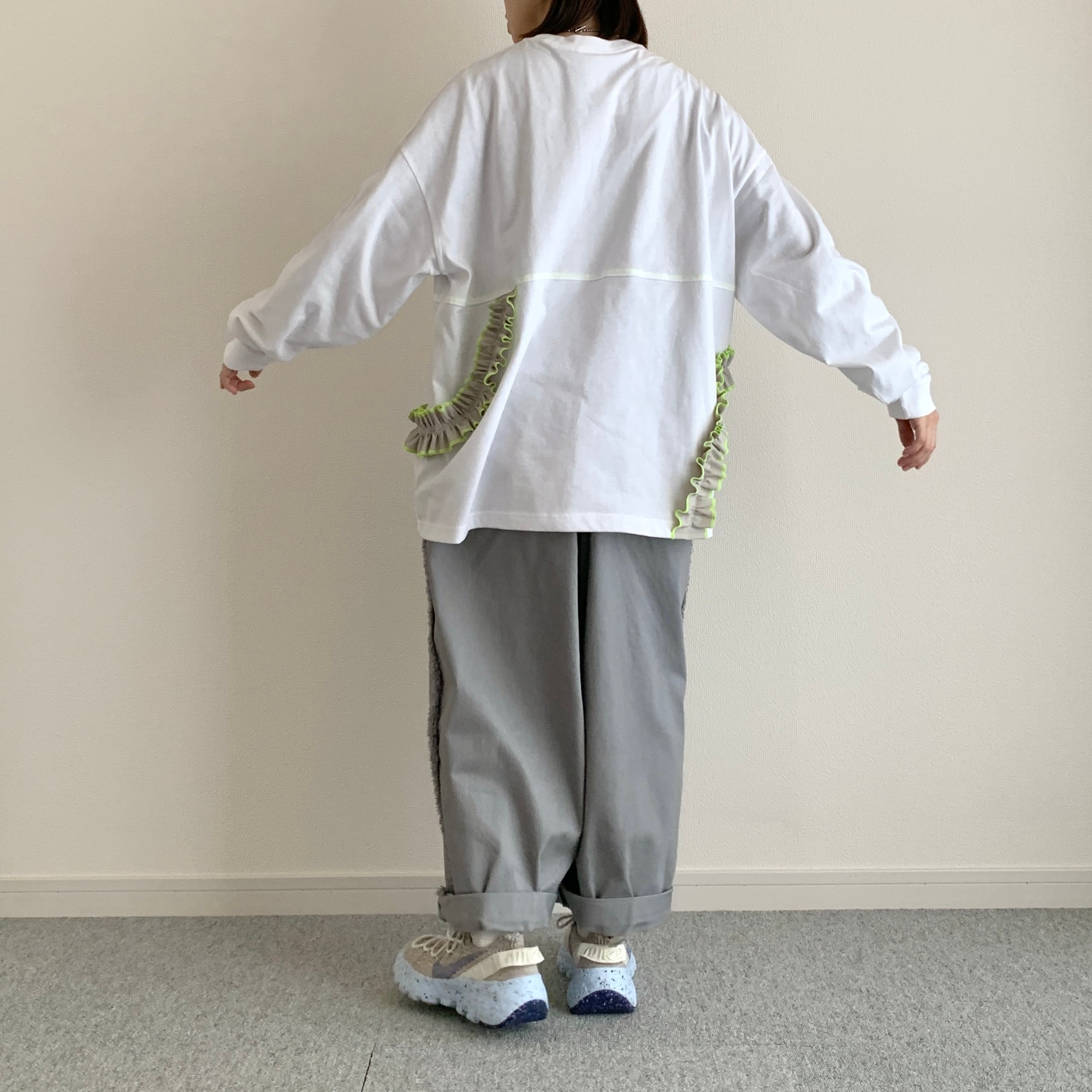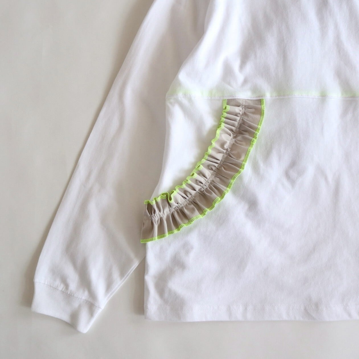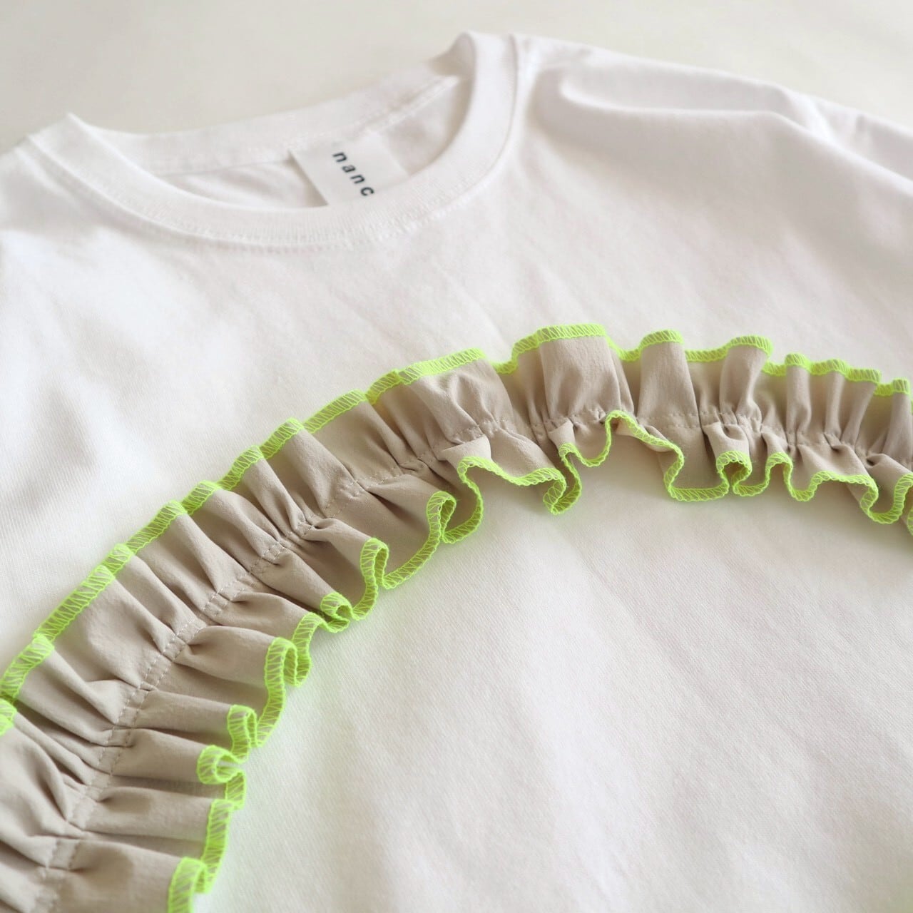 フリル部分のロックミシンステッチもネオンカラーでアクセント。