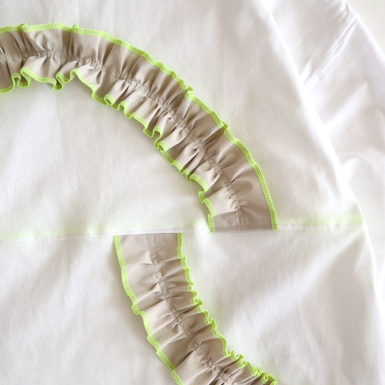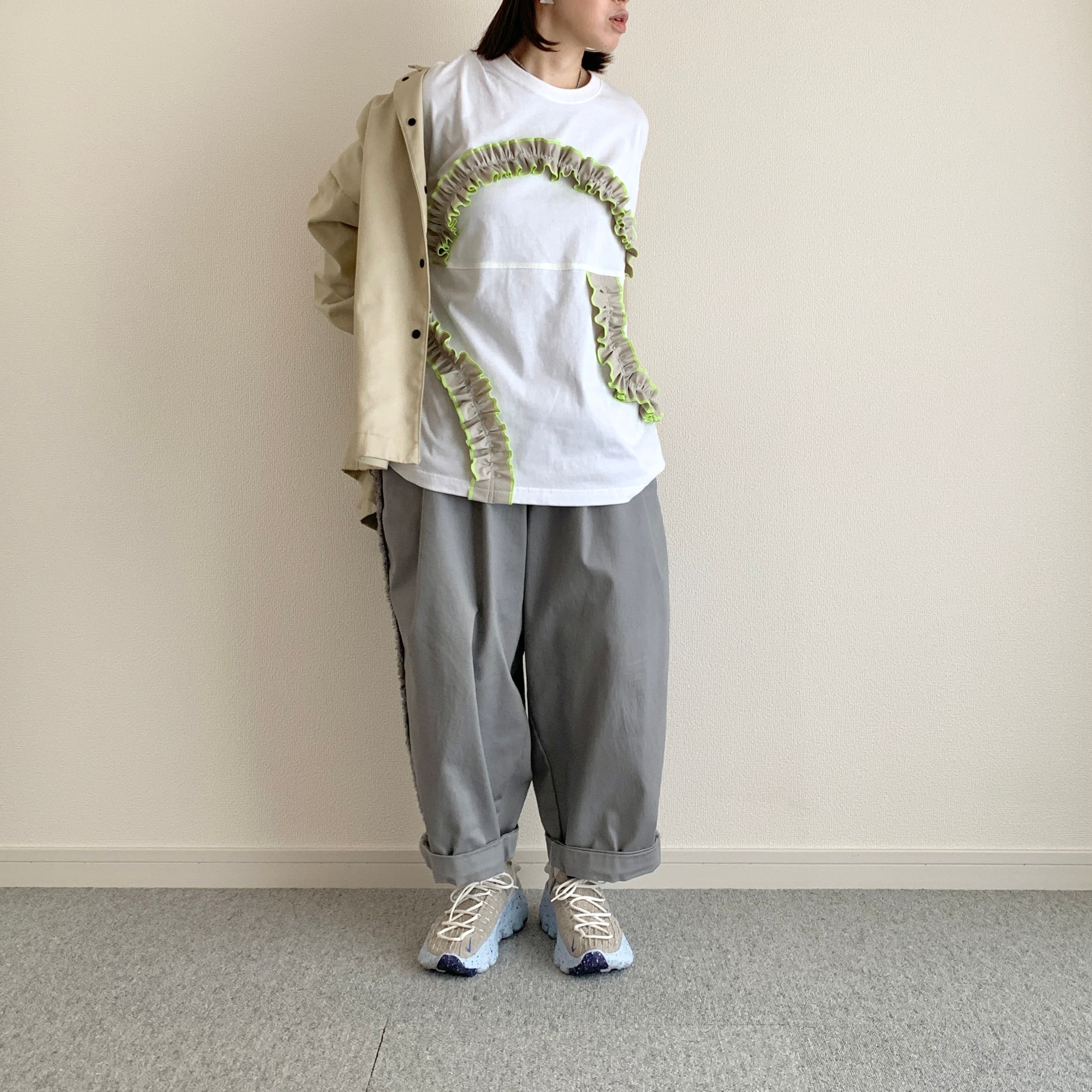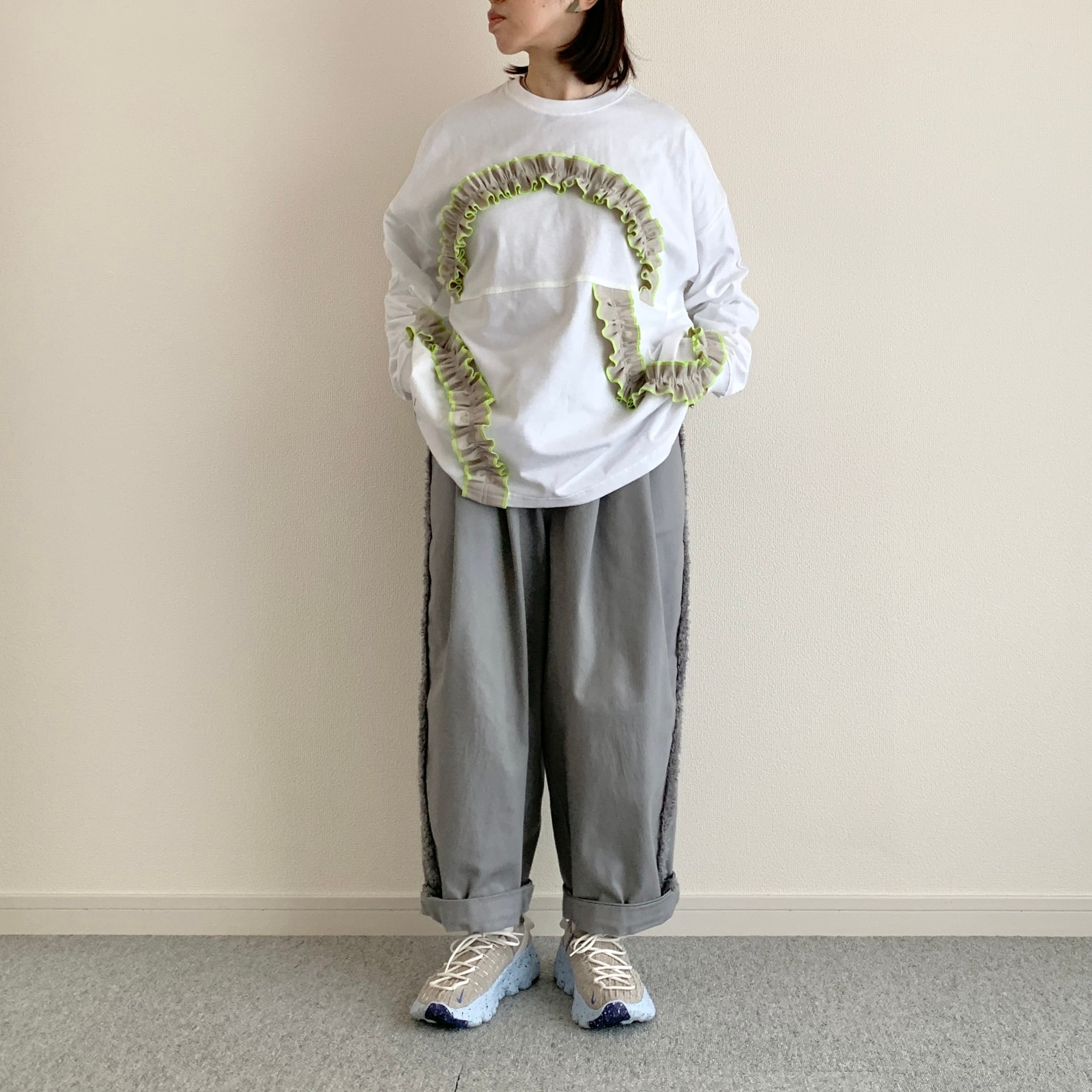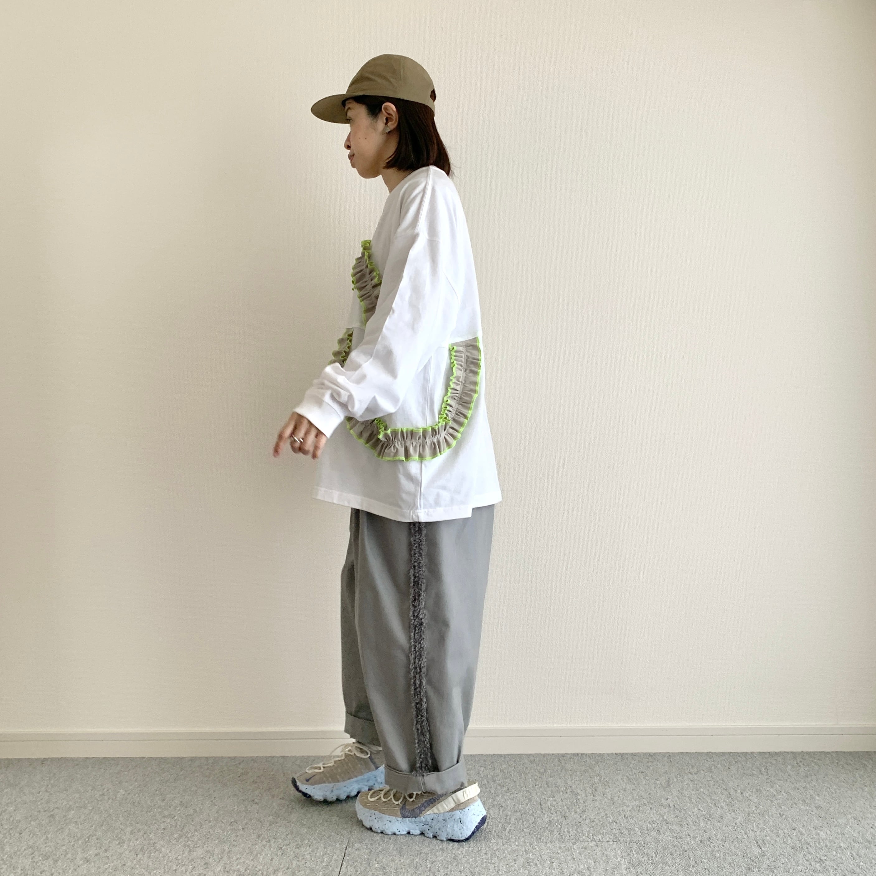 フリル部分のロックミシンステッチもネオンカラーでアクセント。
