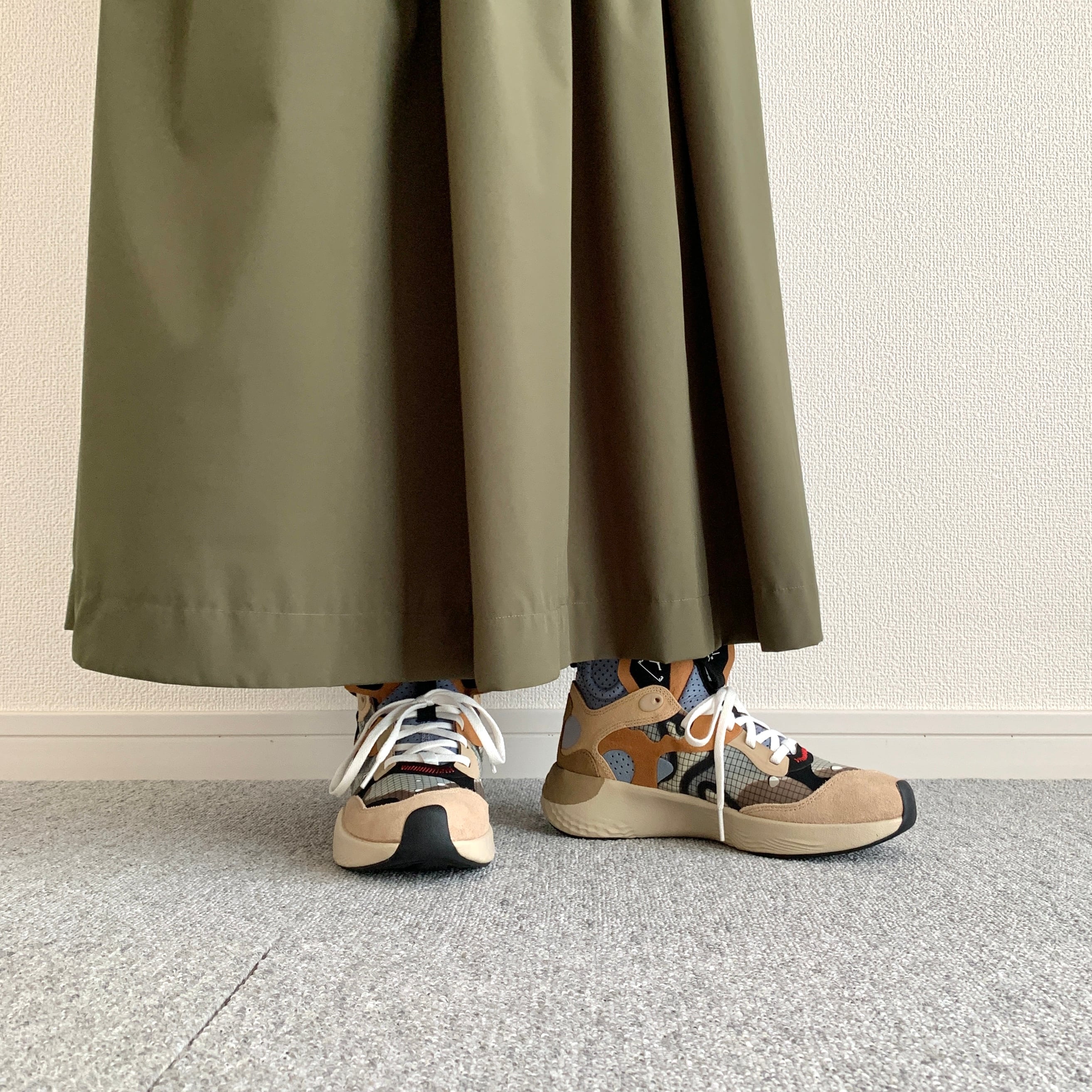僕はこのデルタシリーズを履いている人を見るのが好きです。スカートやワイドパンツなど、布がヒラヒラするボトムスと合わせて街を駆け抜けてほしいです。