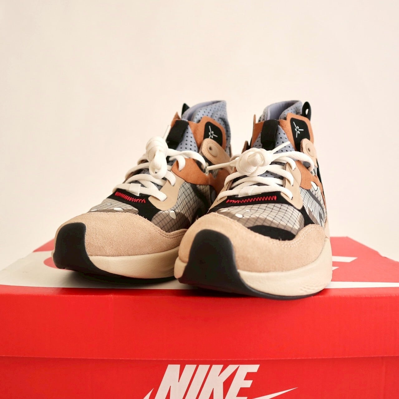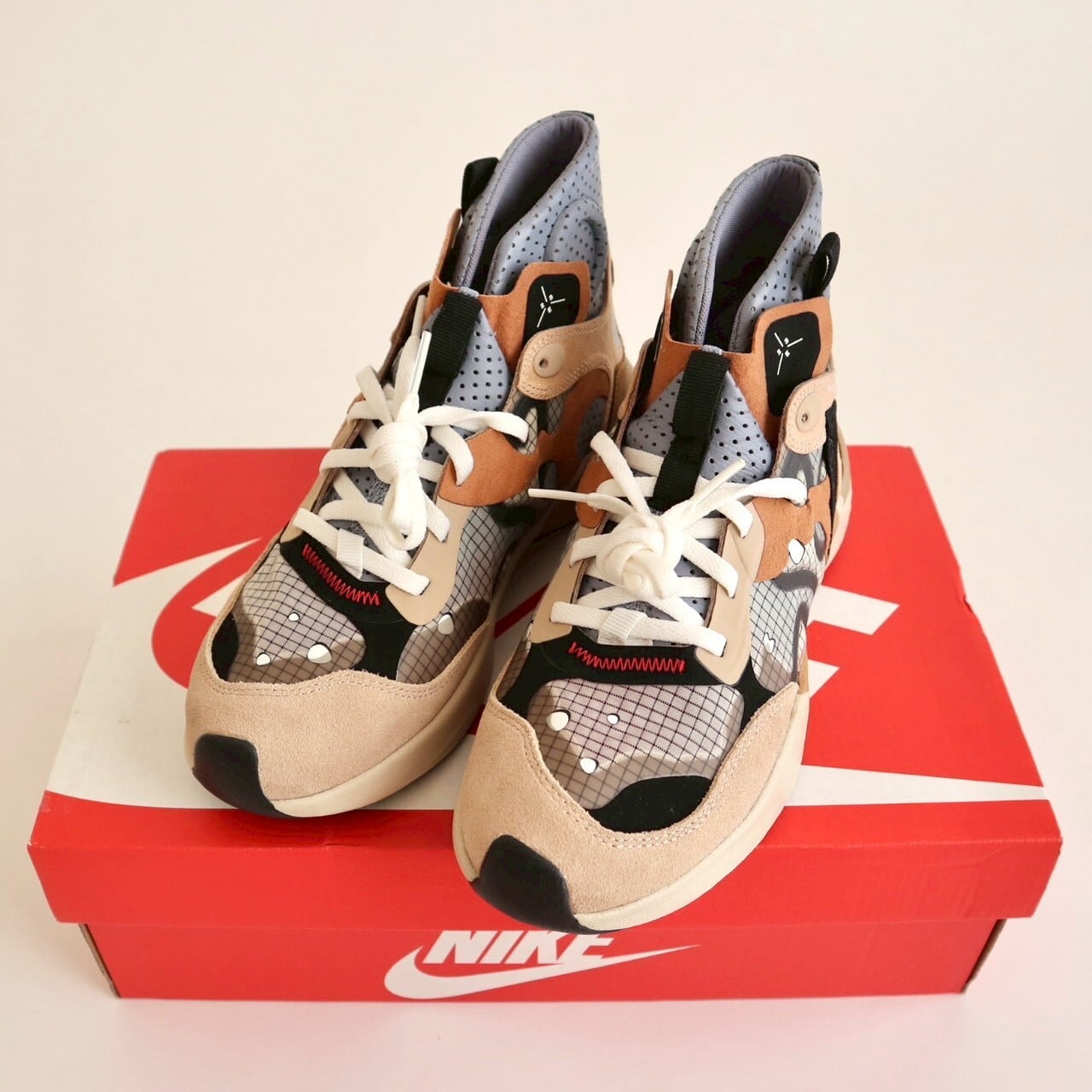 付属品はありません。間違えてナイキの赤いボックスの上で写真を撮っちゃったんですけど、赤い箱は無いので当店オリジナルのボックスに入れて発送します。