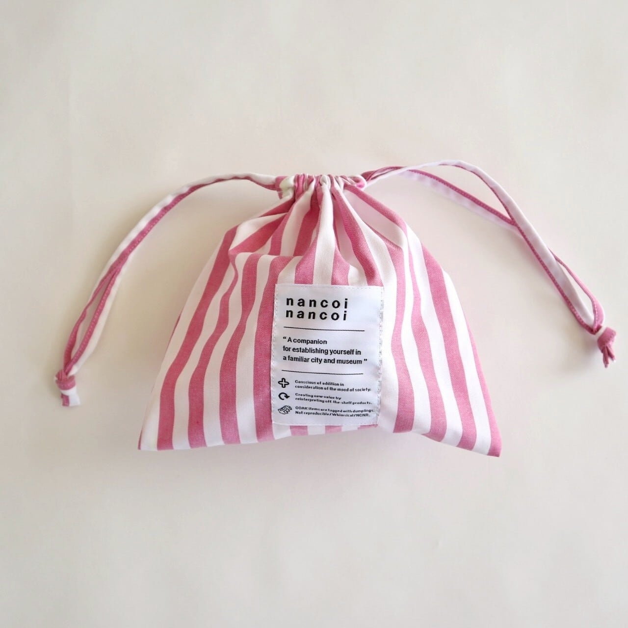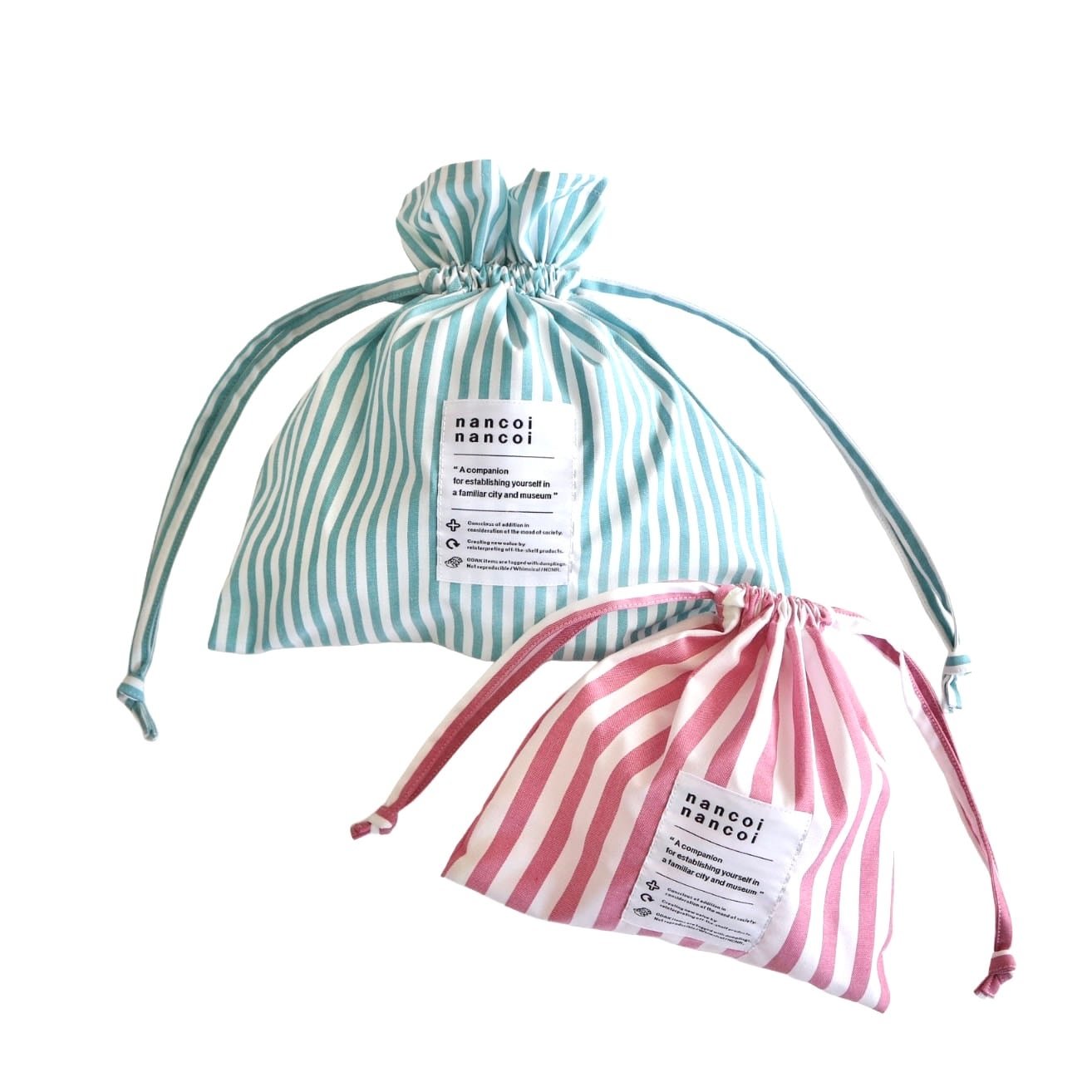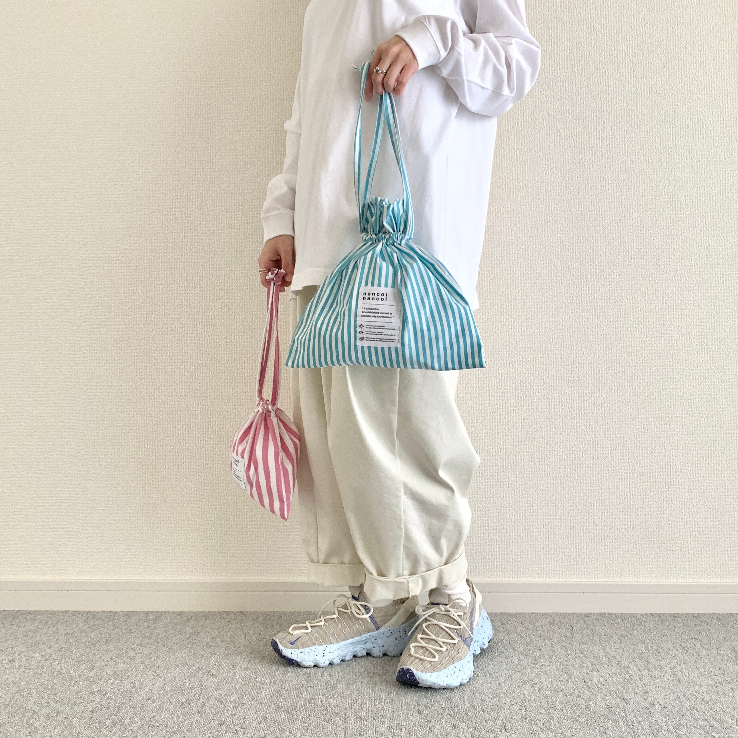 バックインバックにちょうどいい2サイズでもありますし、気が付いたらずっと使っているタイプの布巾着です。