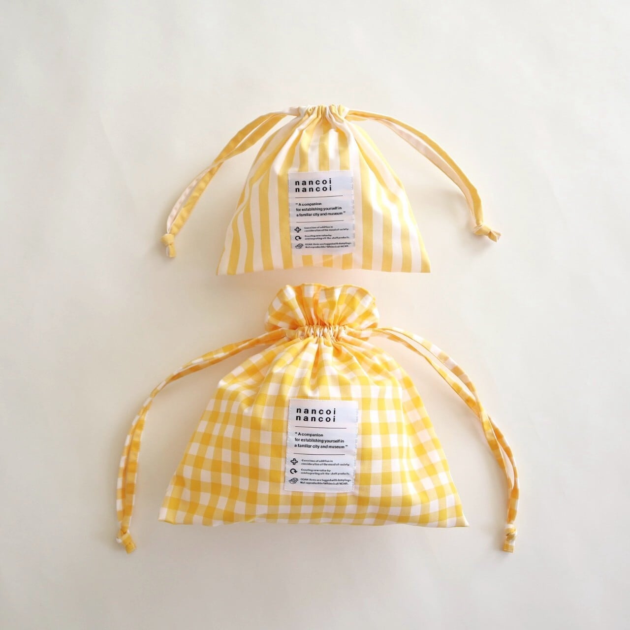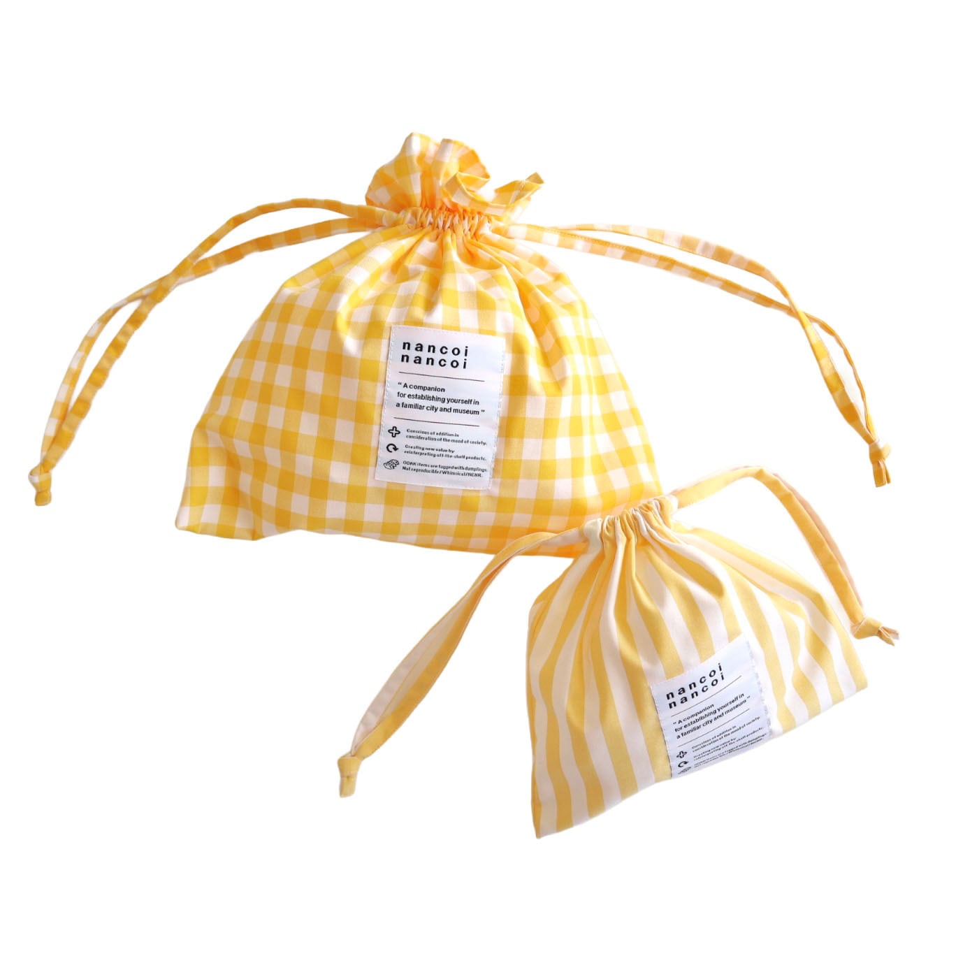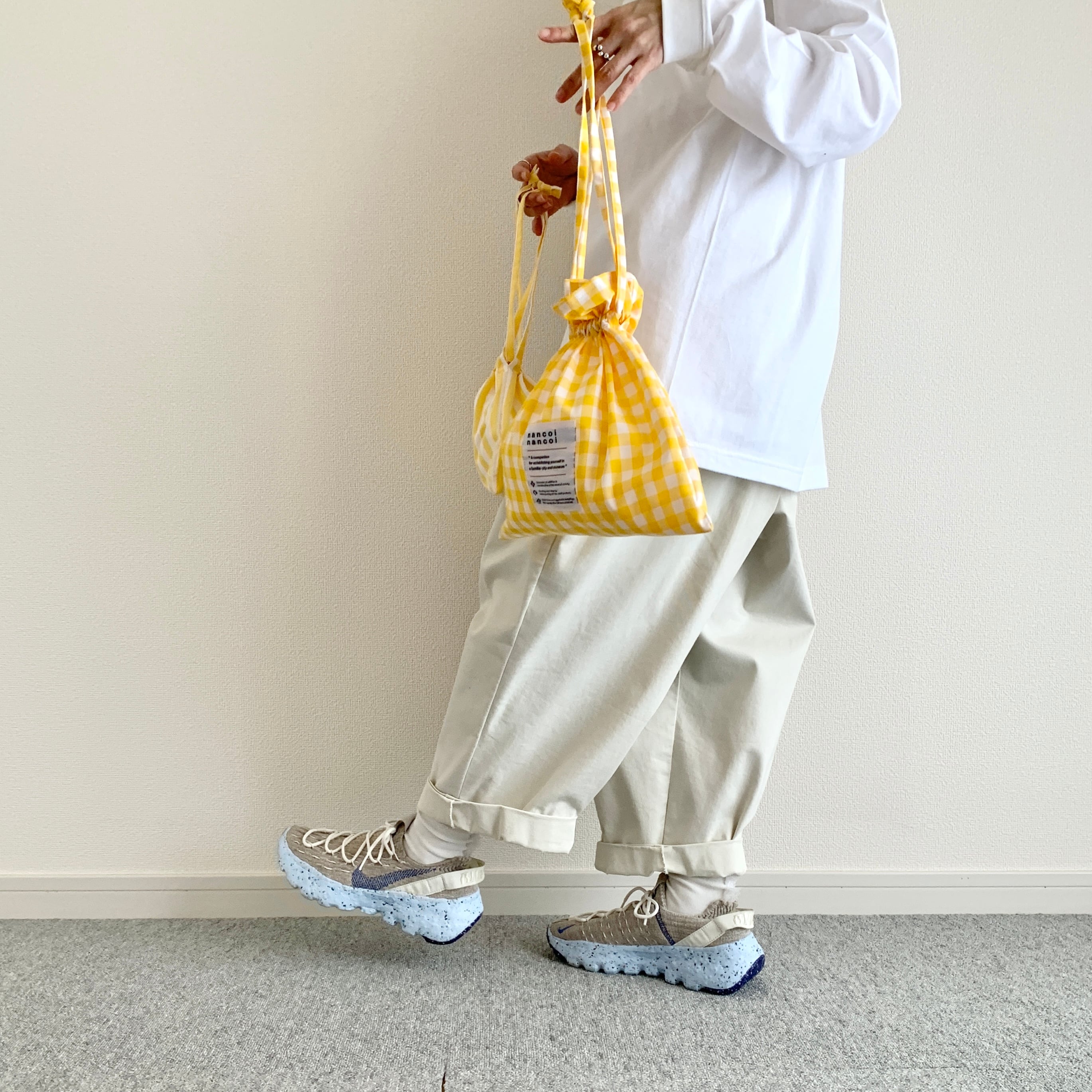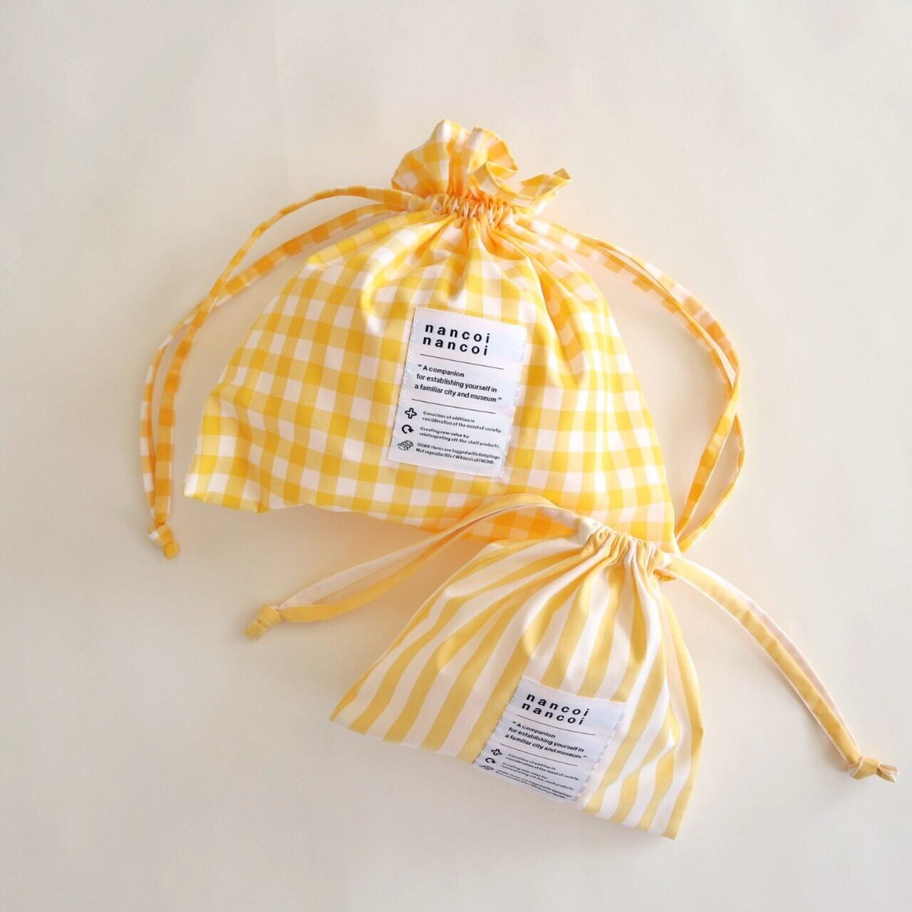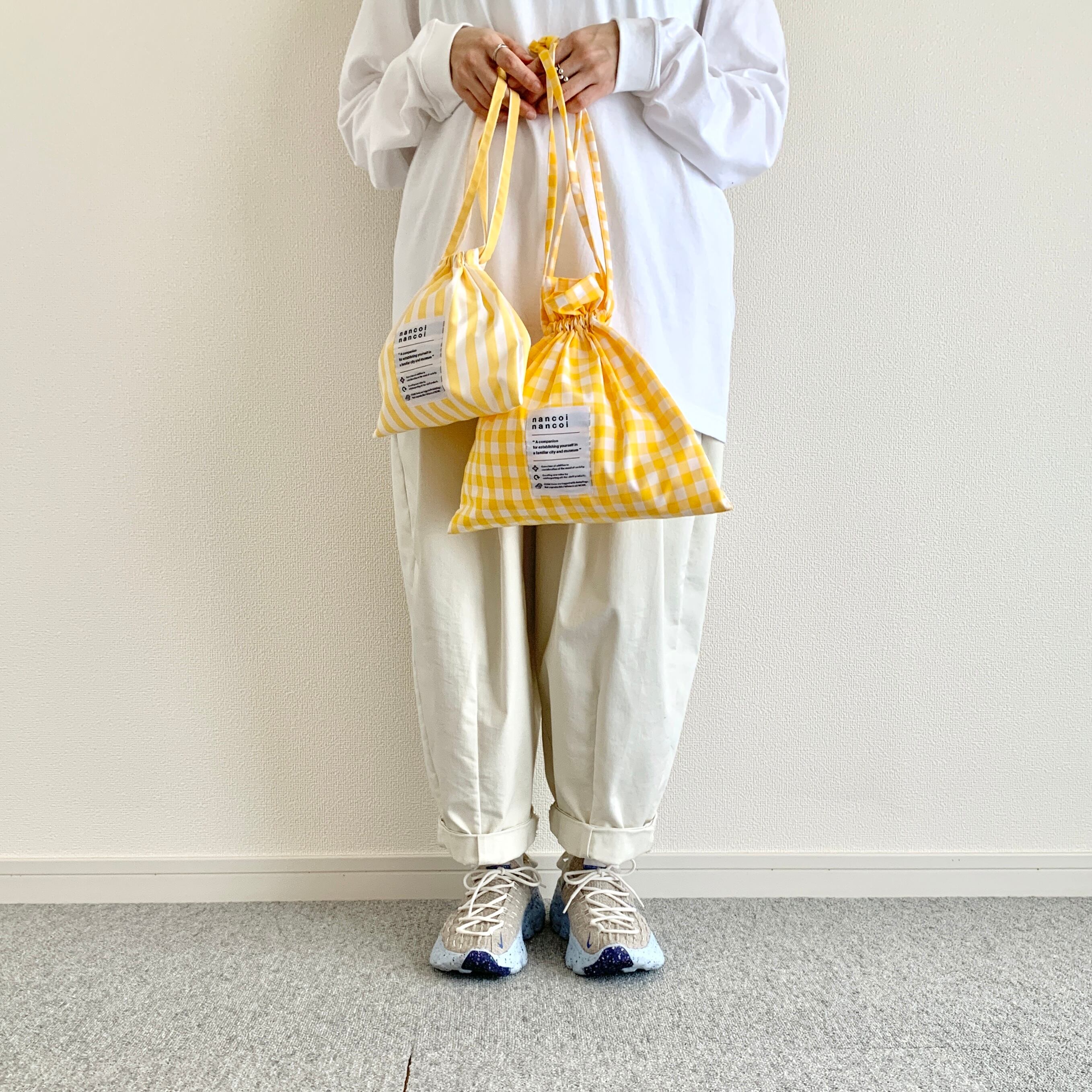 バックインバックにちょうどいい2サイズでもありますし、気が付いたらずっと使っているタイプの布巾着です。
