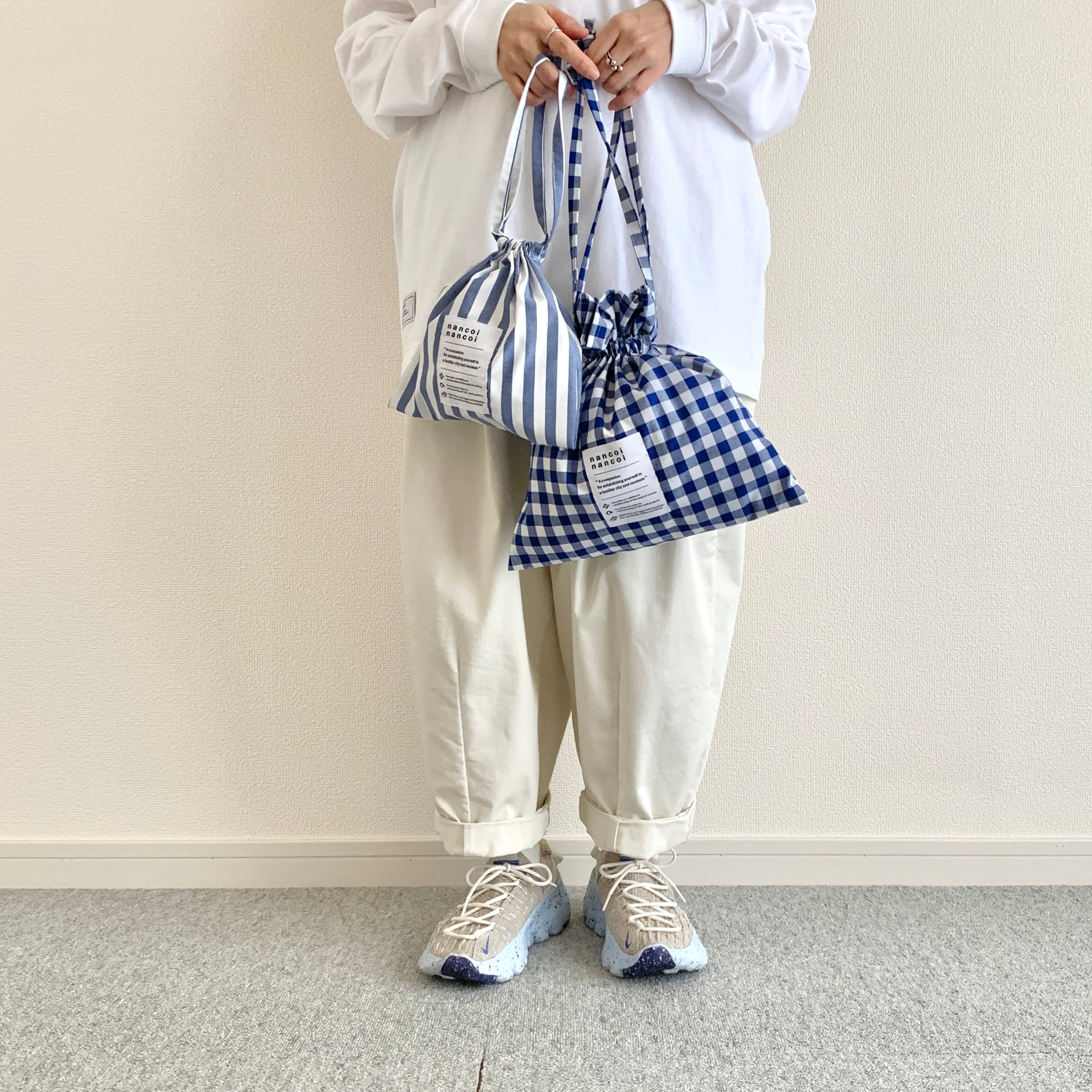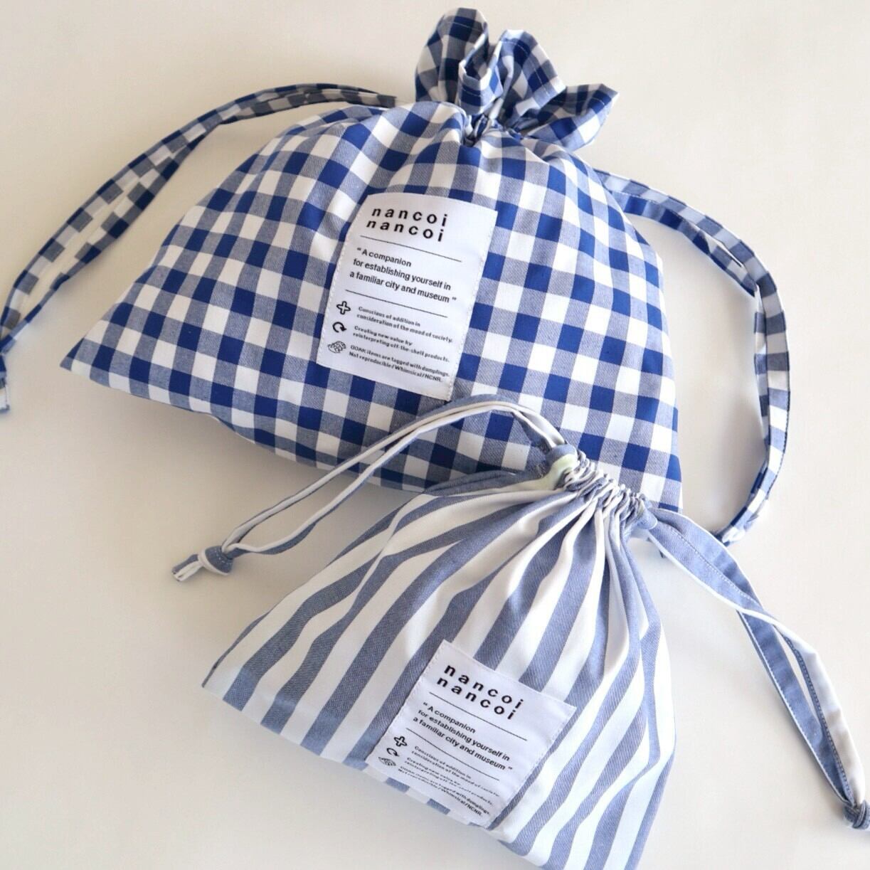 バックインバックにちょうどいい2サイズでもありますし、気が付いたらずっと使っているタイプの布巾着です。