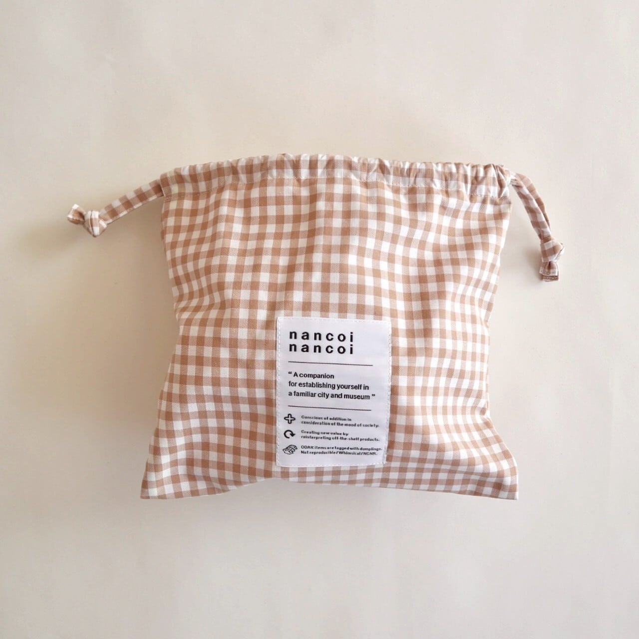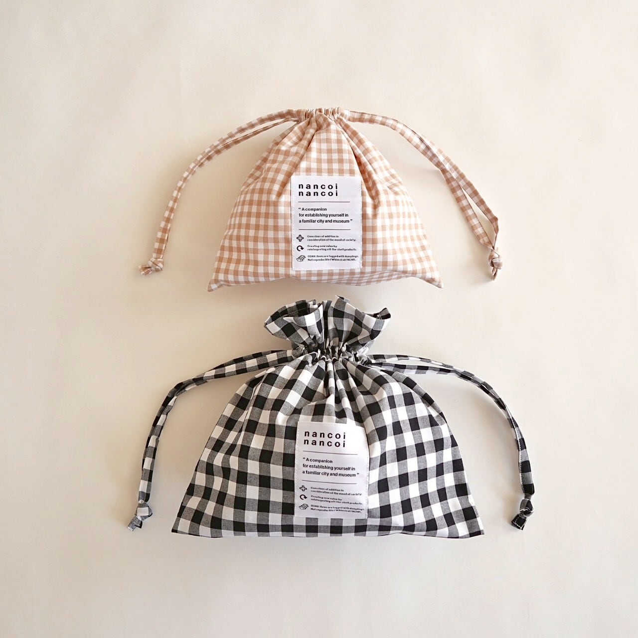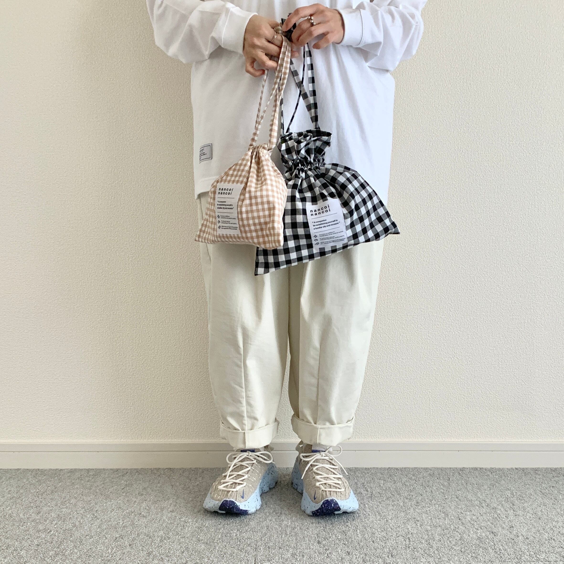 バックインバックにちょうどいい2サイズでもありますし、気が付いたらずっと使っているタイプの布巾着です。