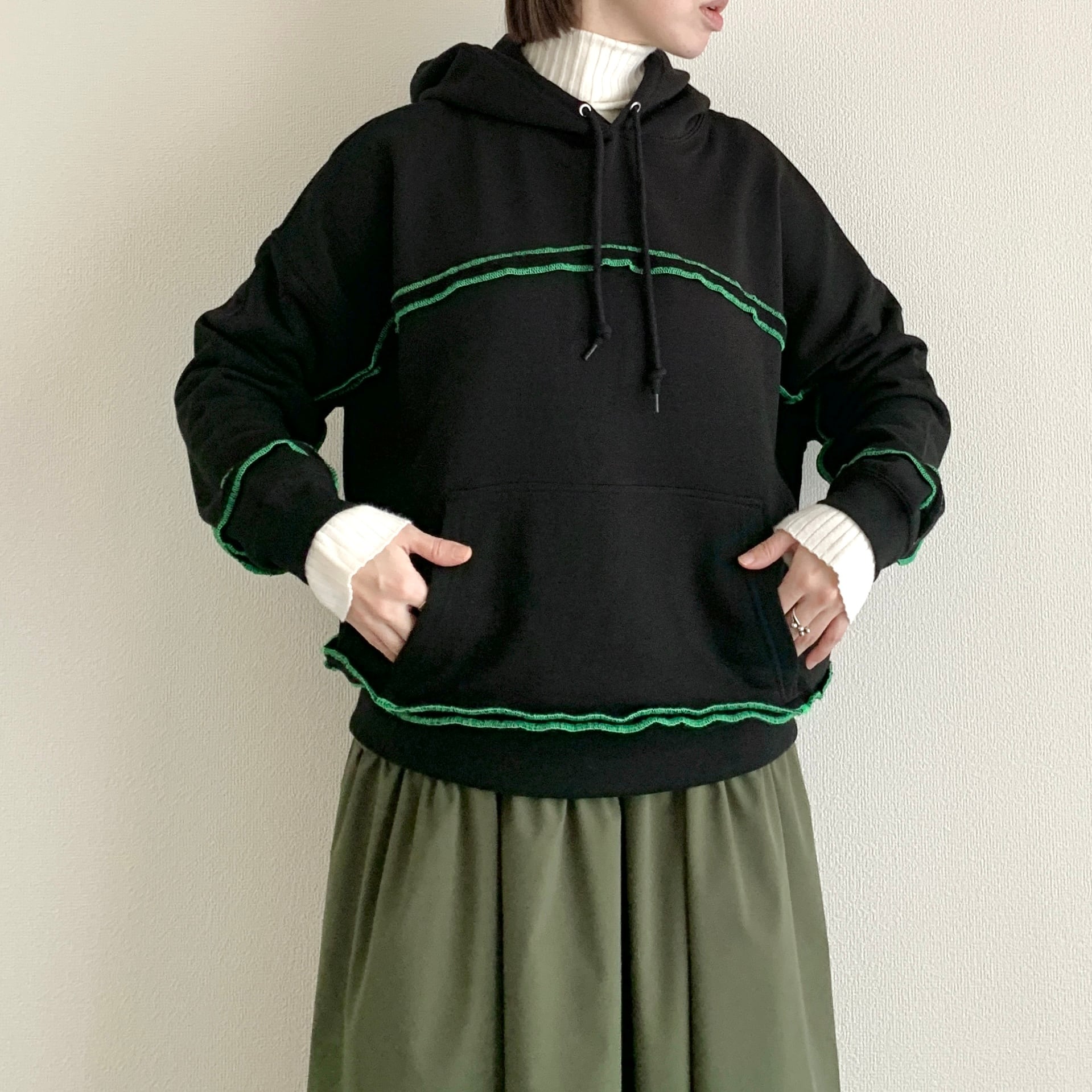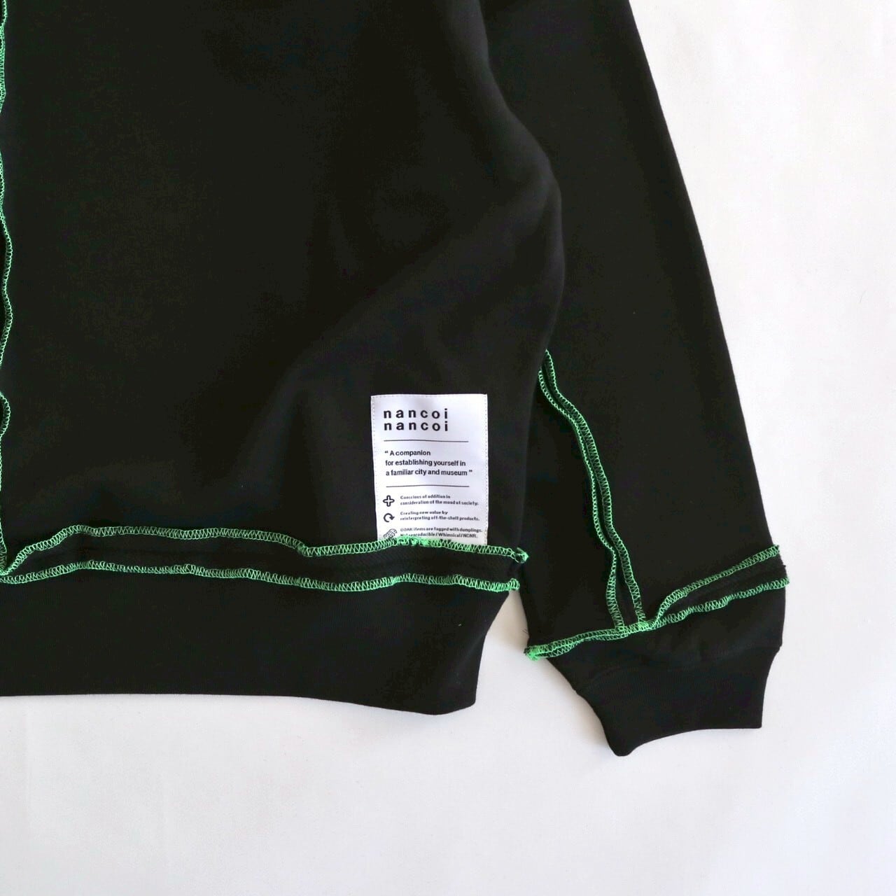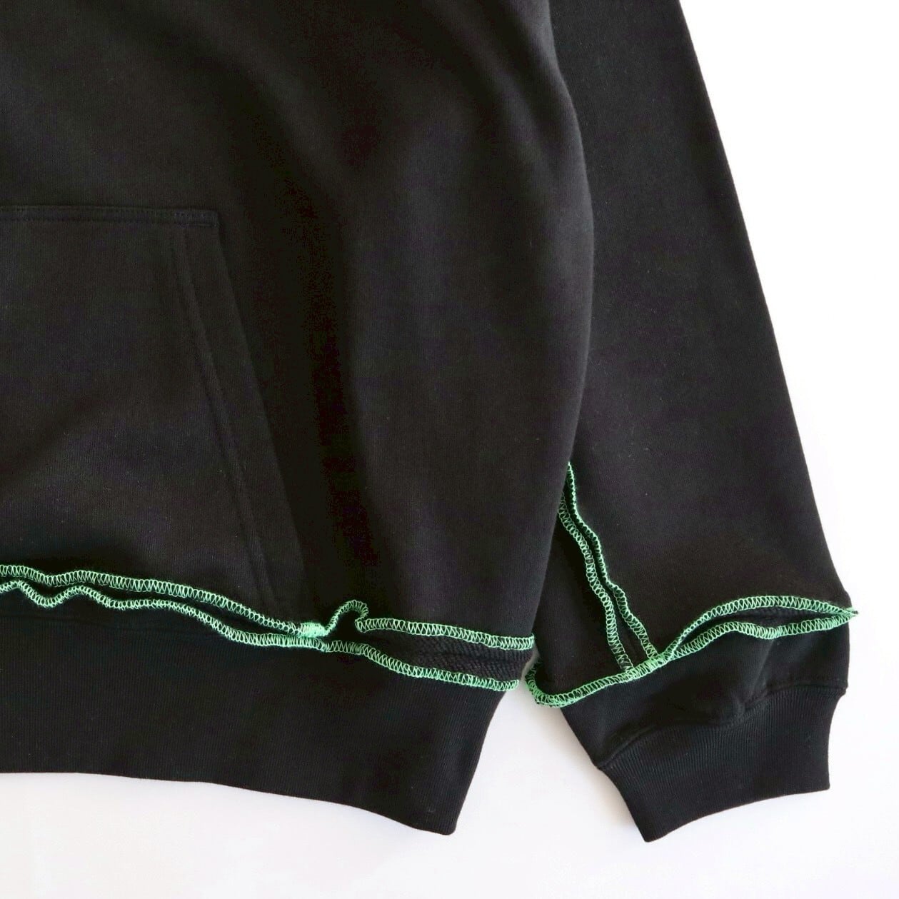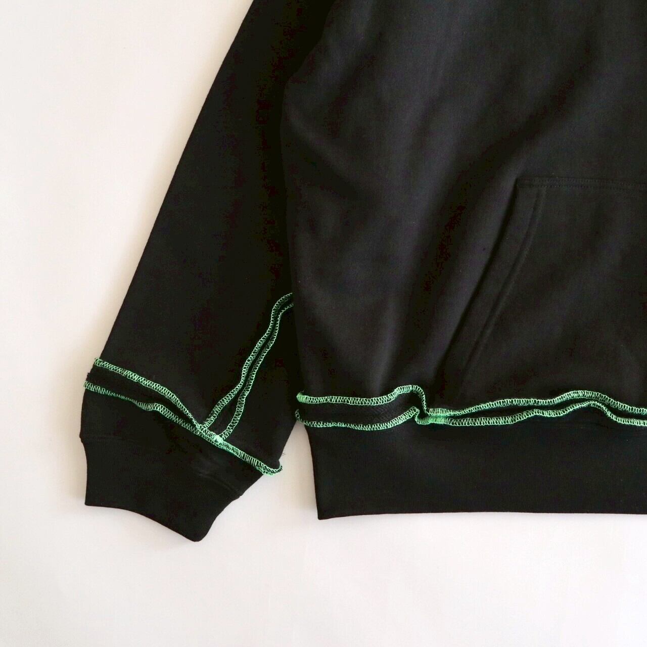 蛍光グリーンのステッチが特徴的なスウェットプルオーバーです。