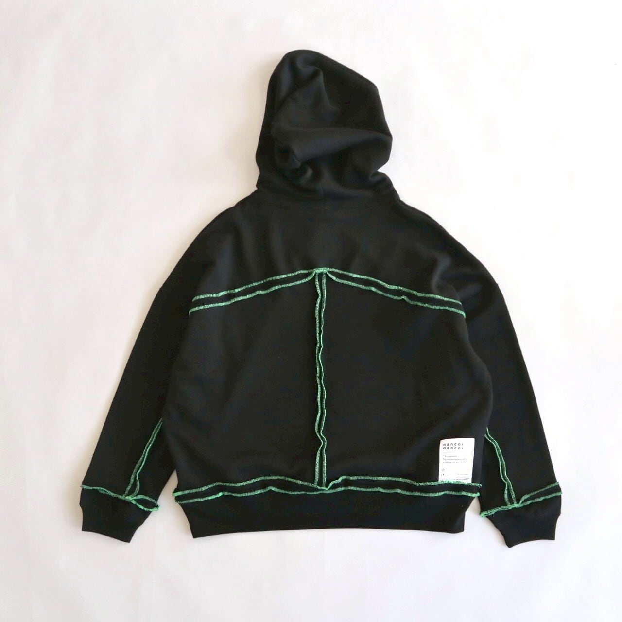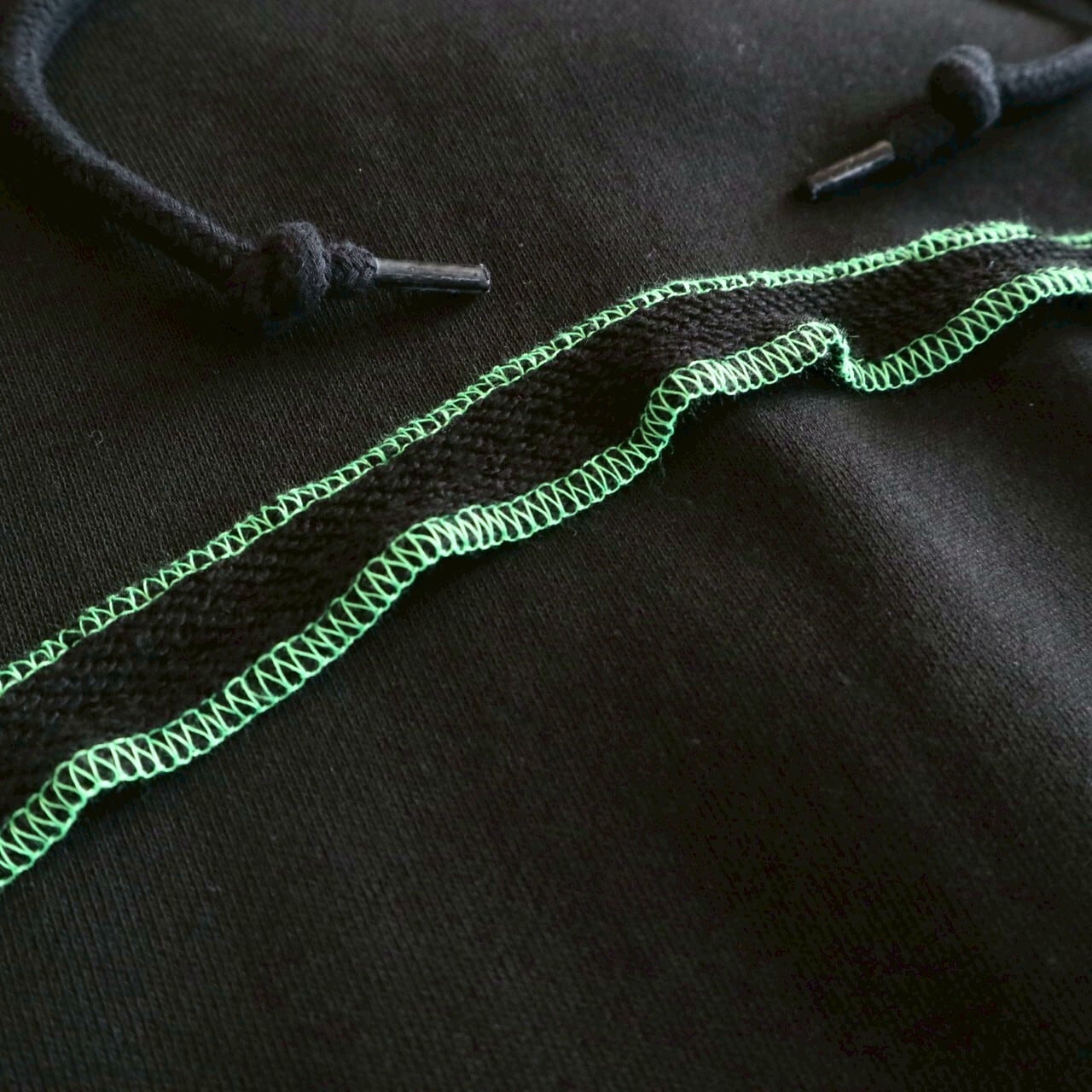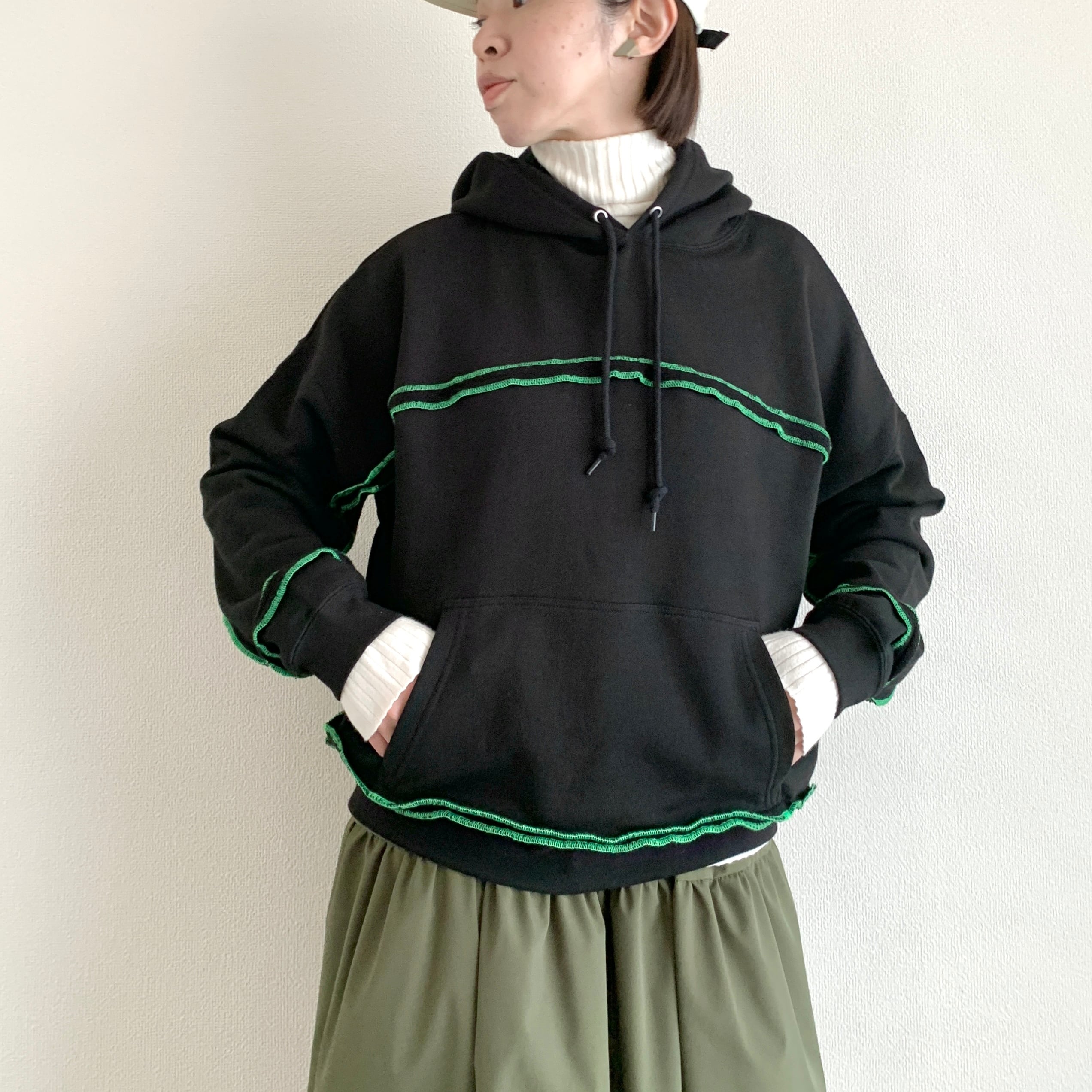 蛍光グリーンのステッチが特徴的なスウェットプルオーバーです。