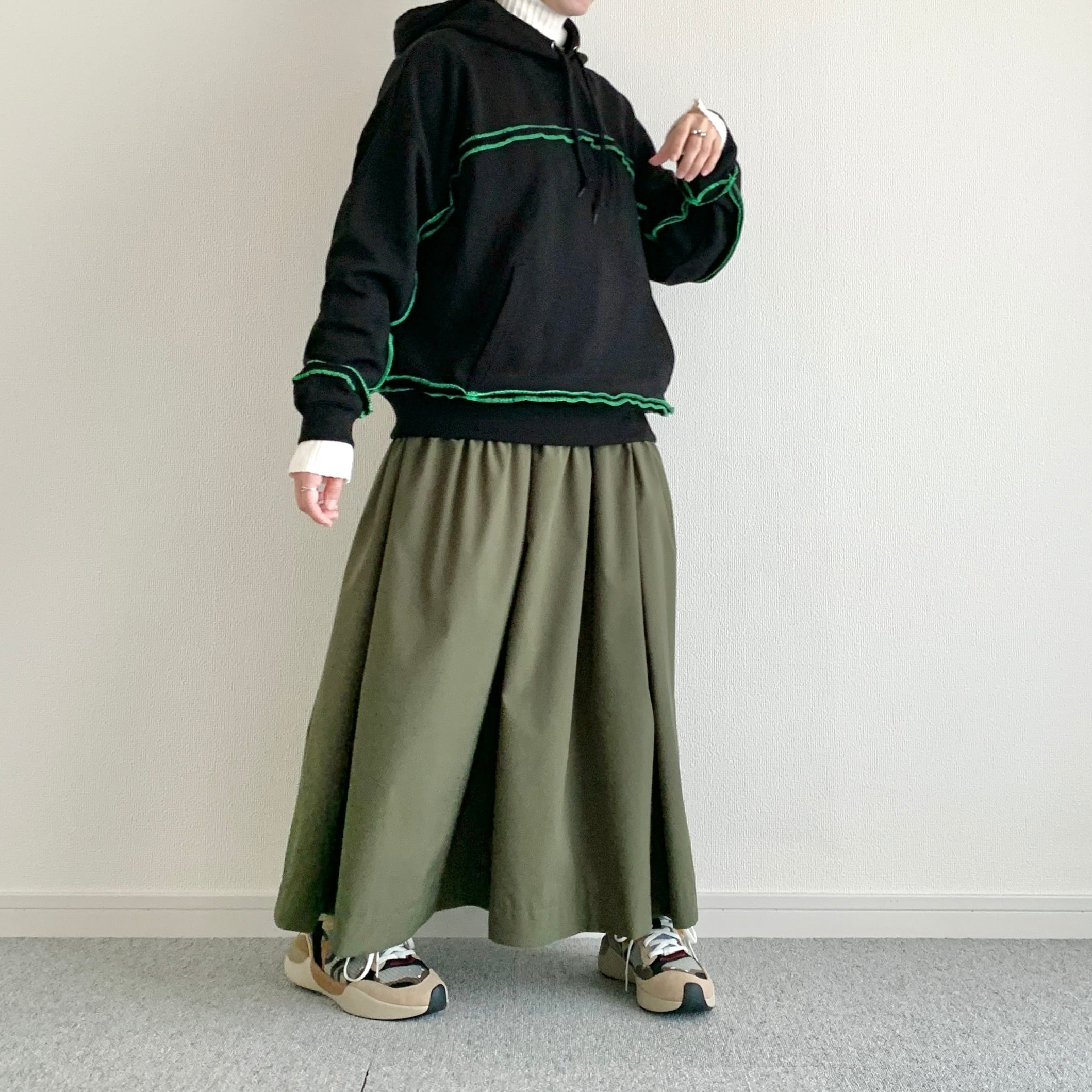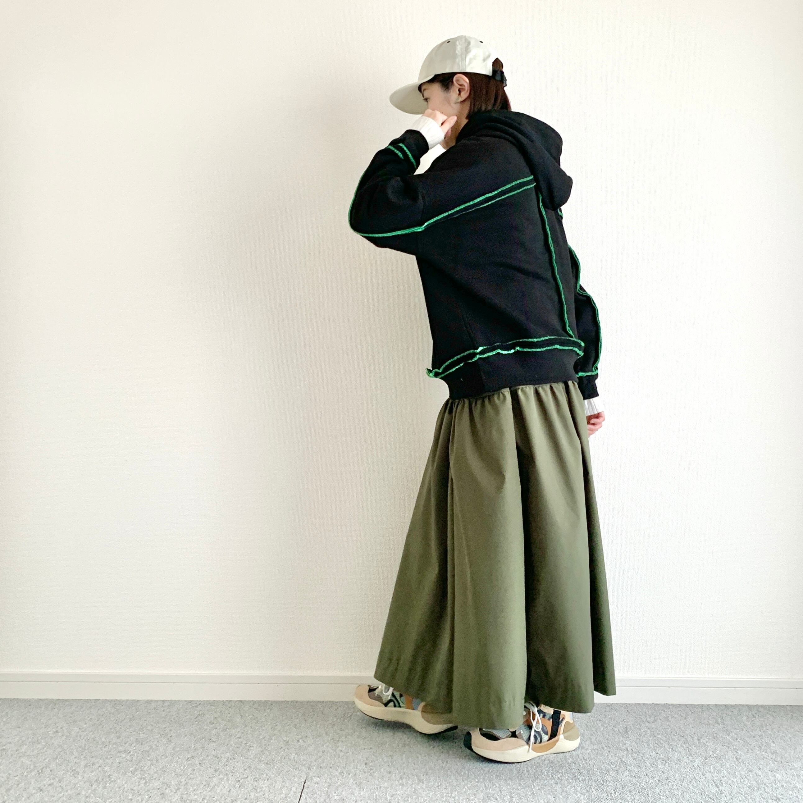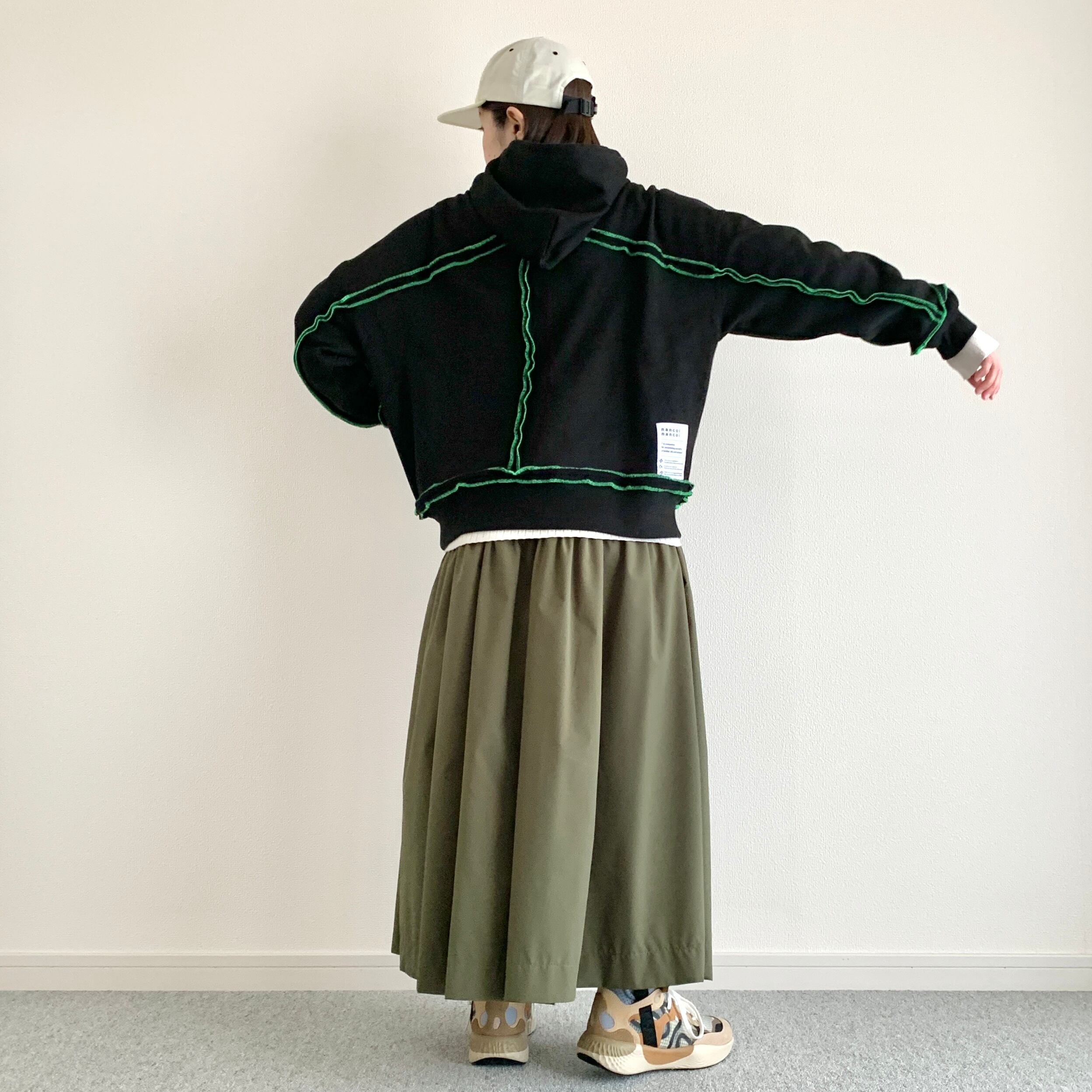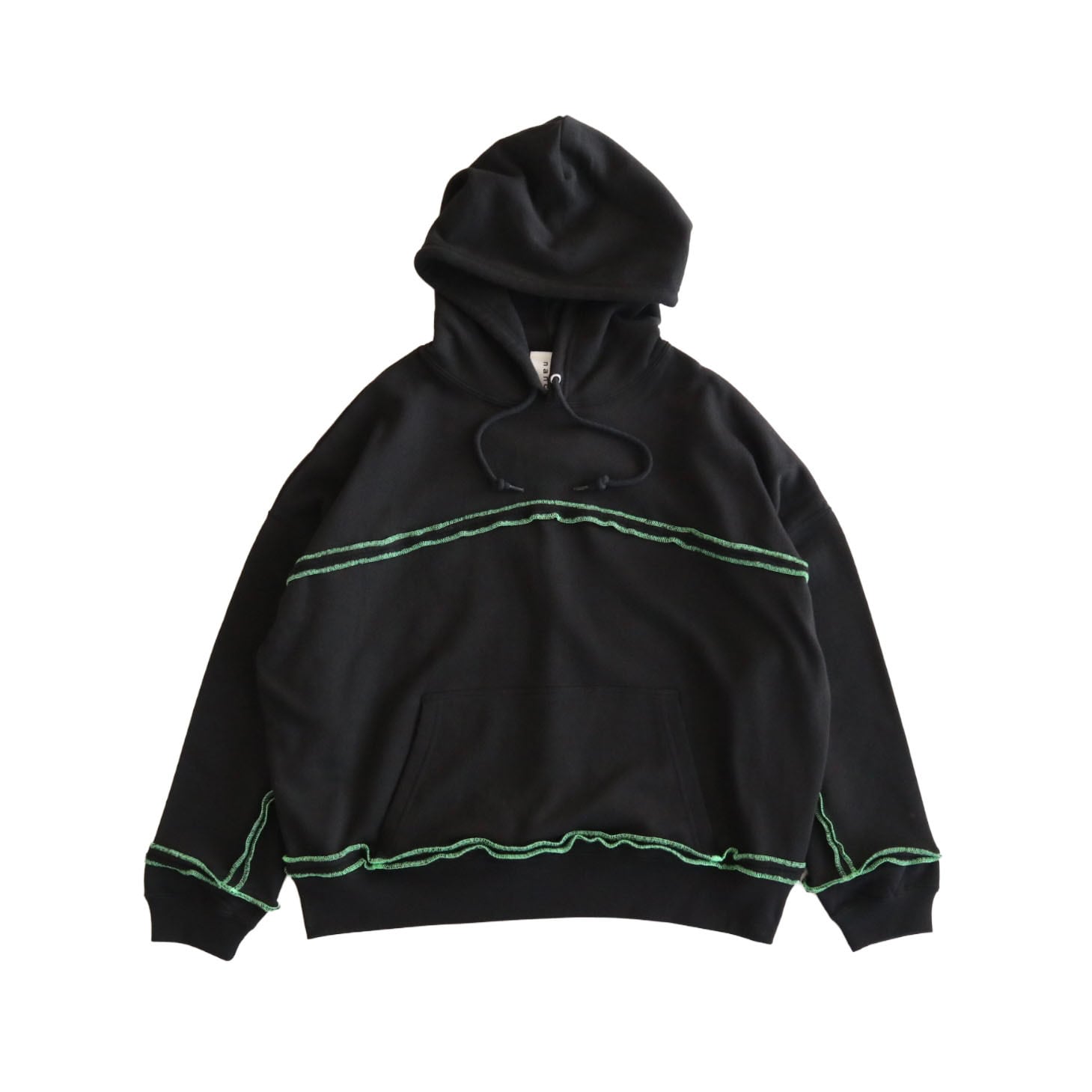 蛍光グリーンのステッチが特徴的なスウェットプルオーバーです。