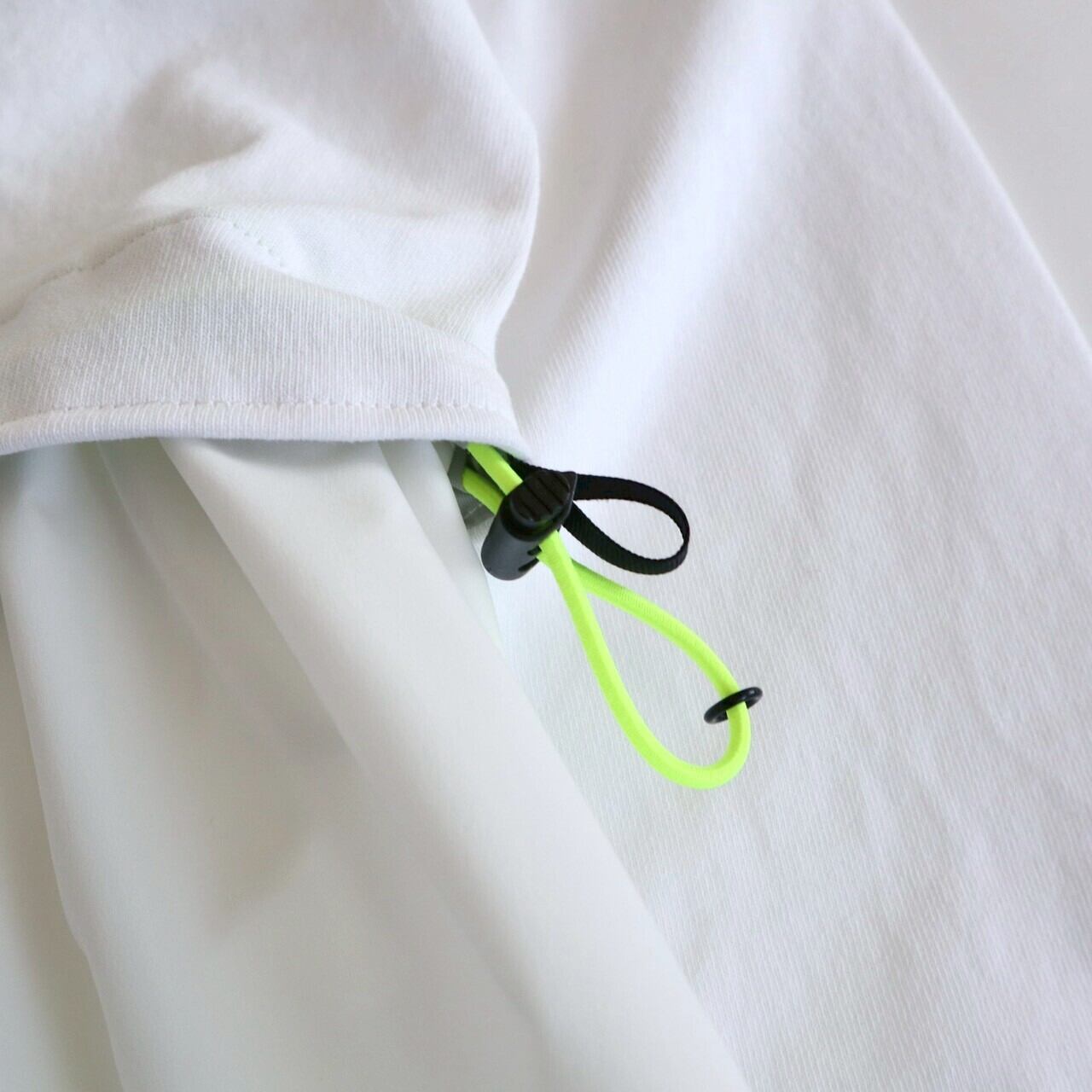 コードの色、ロックミシンのステッチの色がネオンカラーで効いてます。