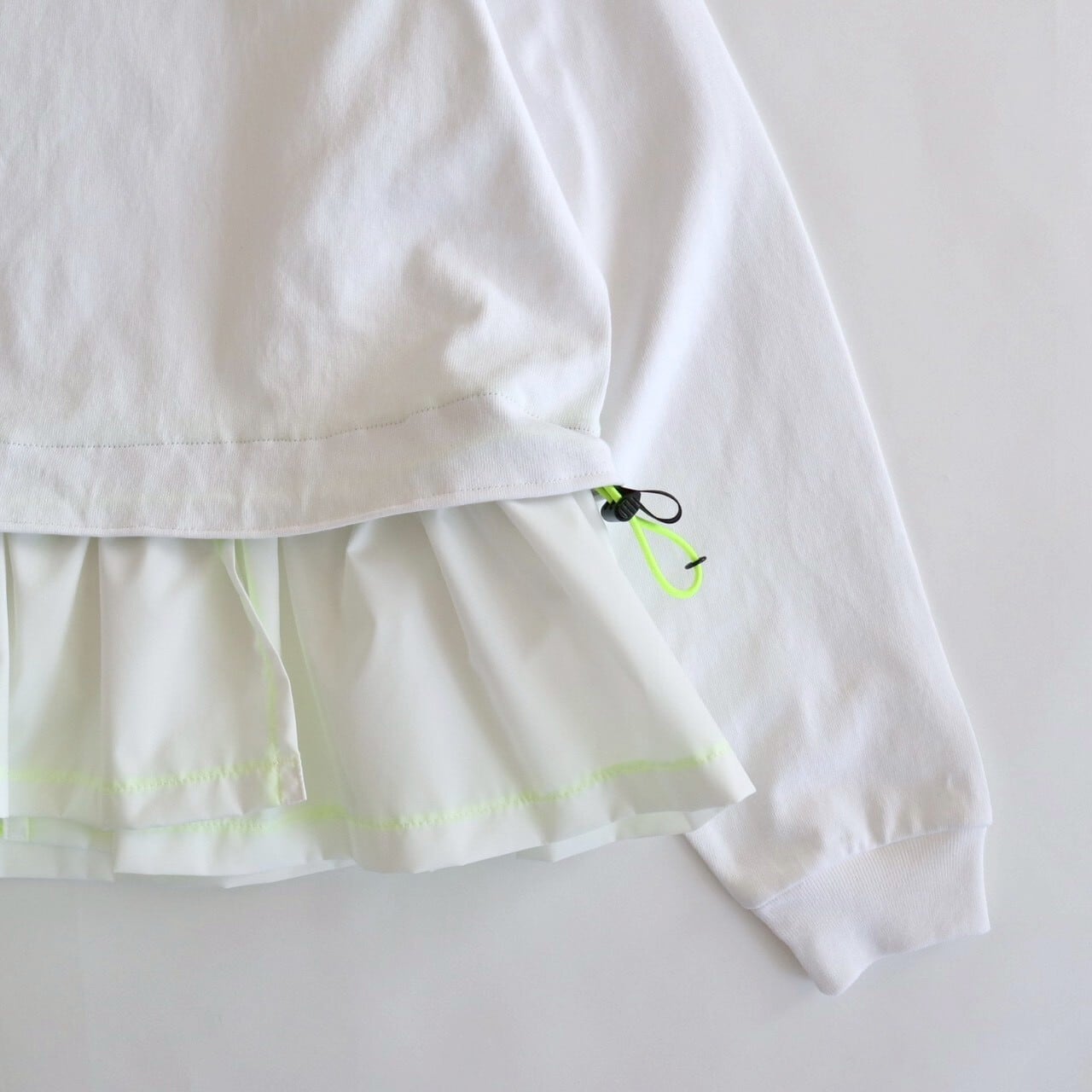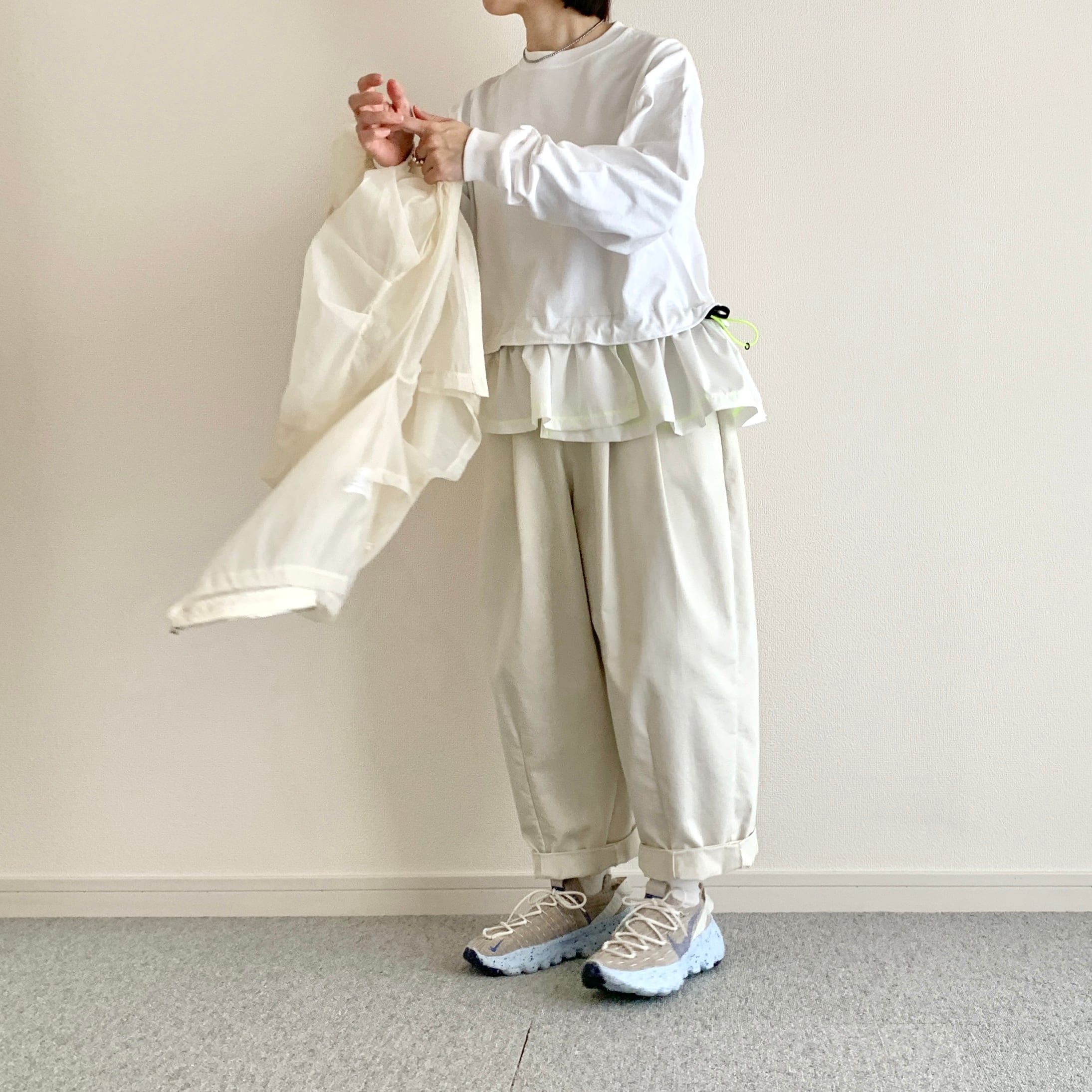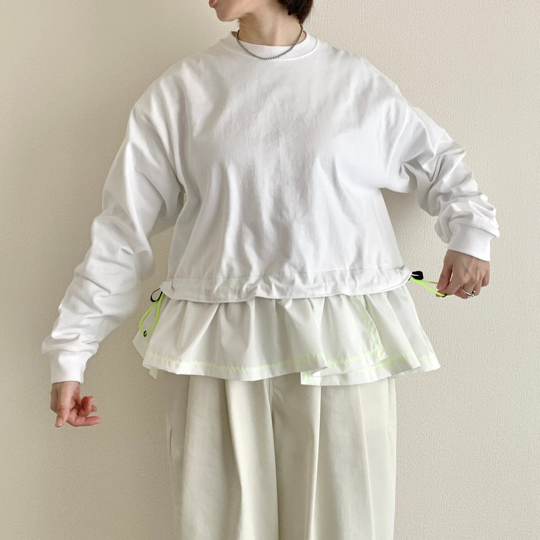 身頃とフリルの境目はコードが入った見返し仕立てになっているのでコードを絞ってシルエットを変えられます。