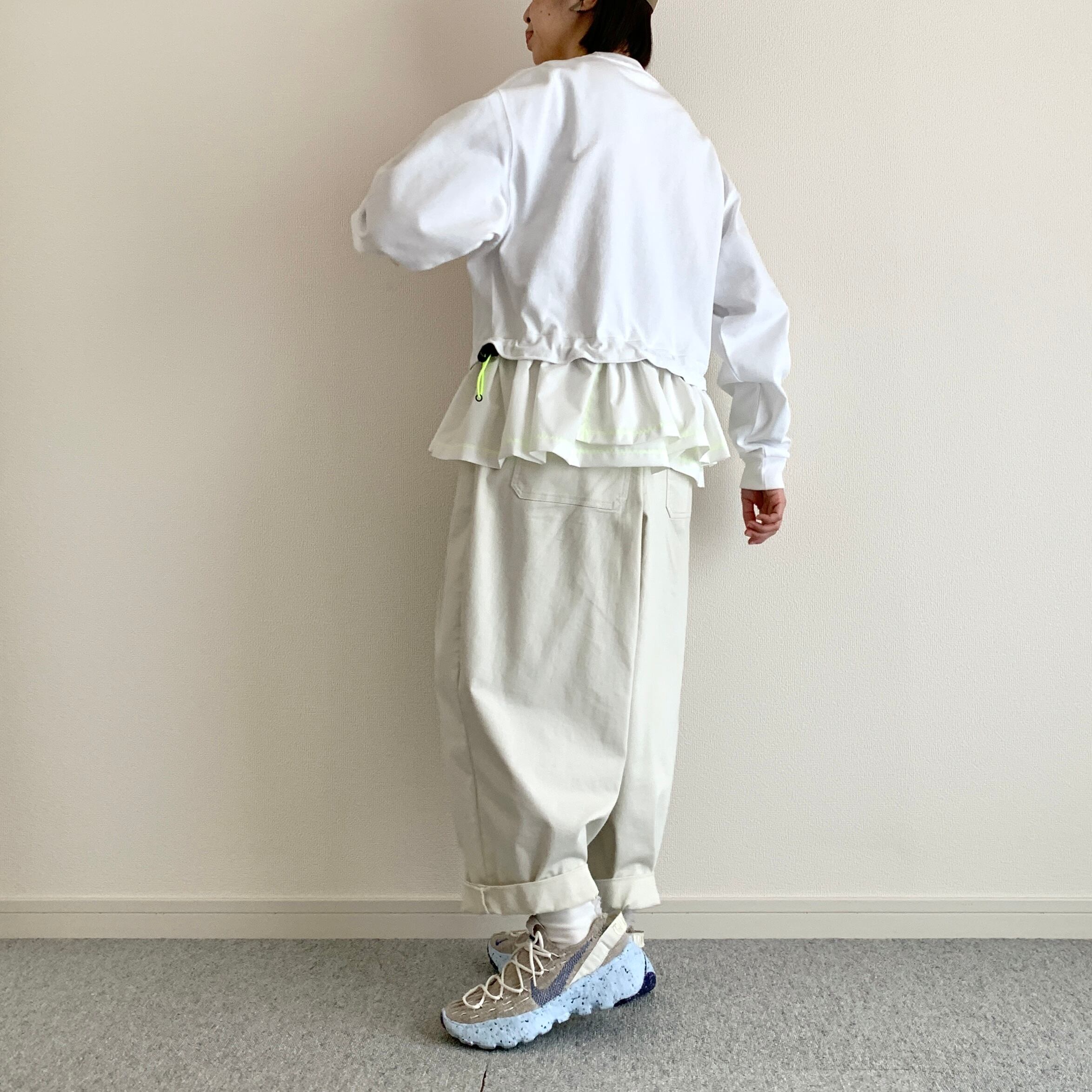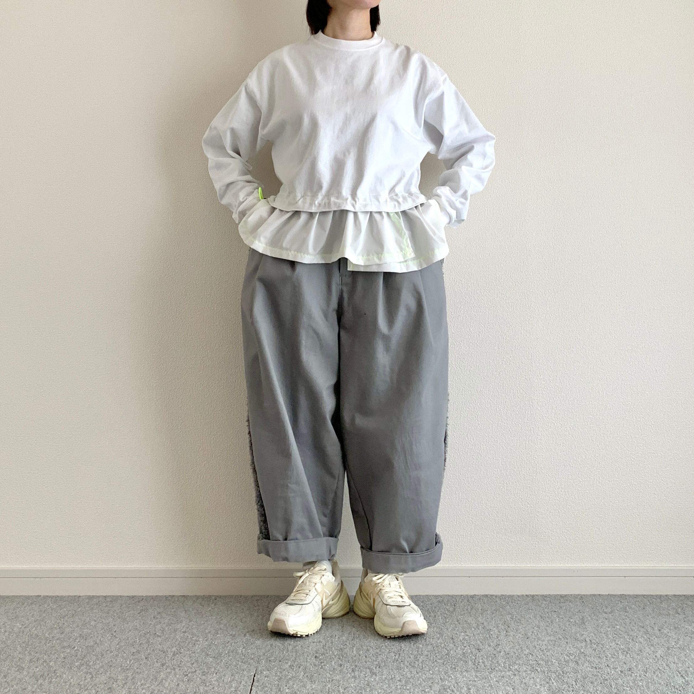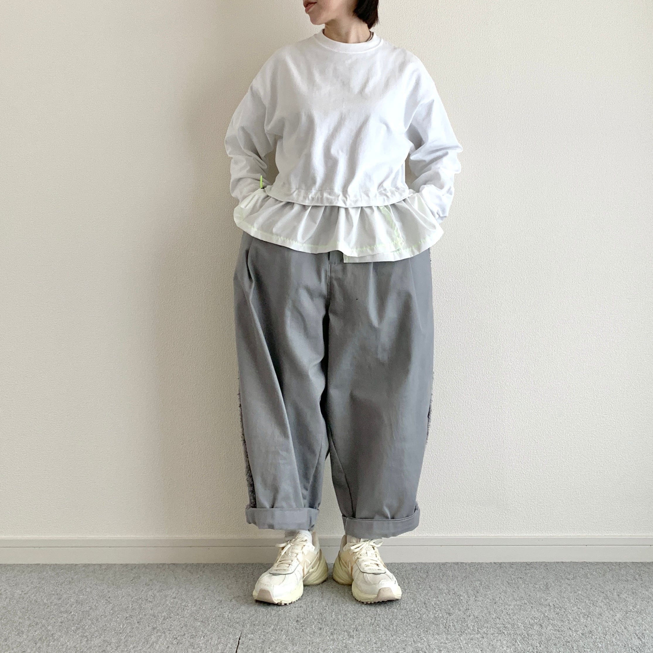 サクッとロンTEE着たいけど、ちょっと可愛いさやファッション性が欲しいなぁというときに丁度いい、さらっと1枚でキマるトップスです。