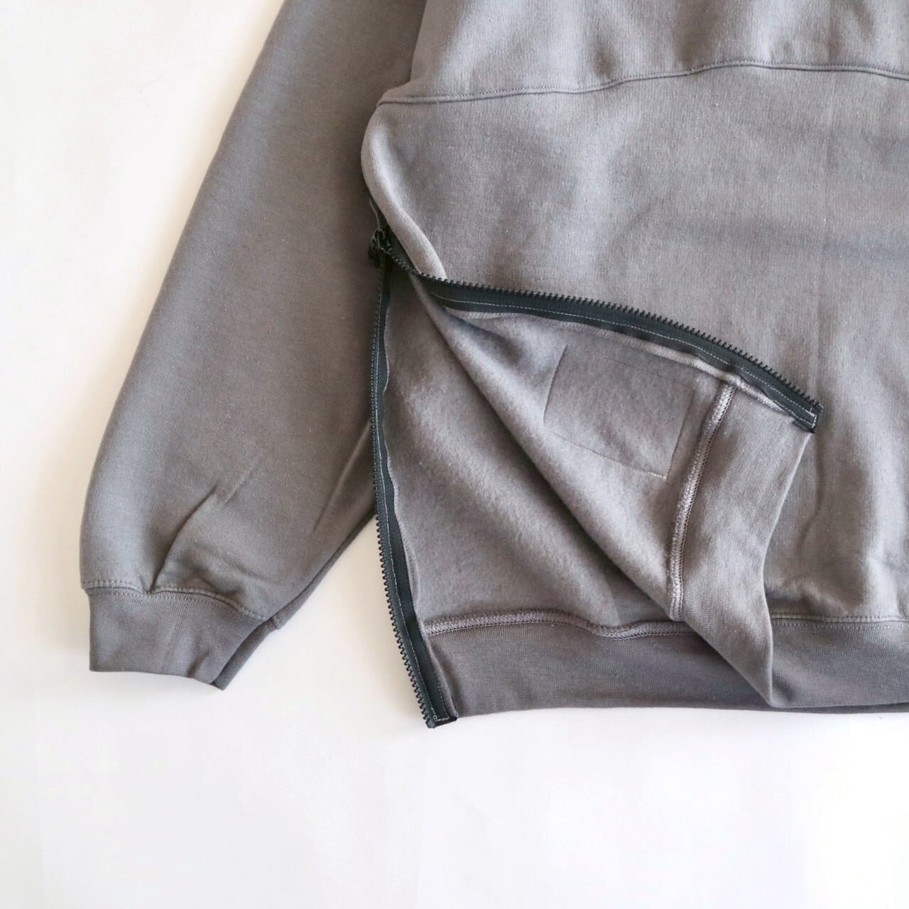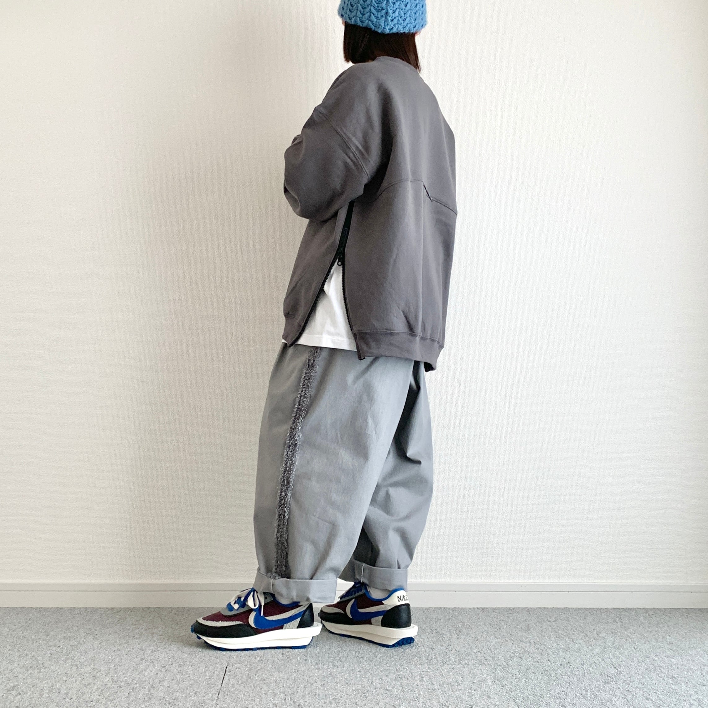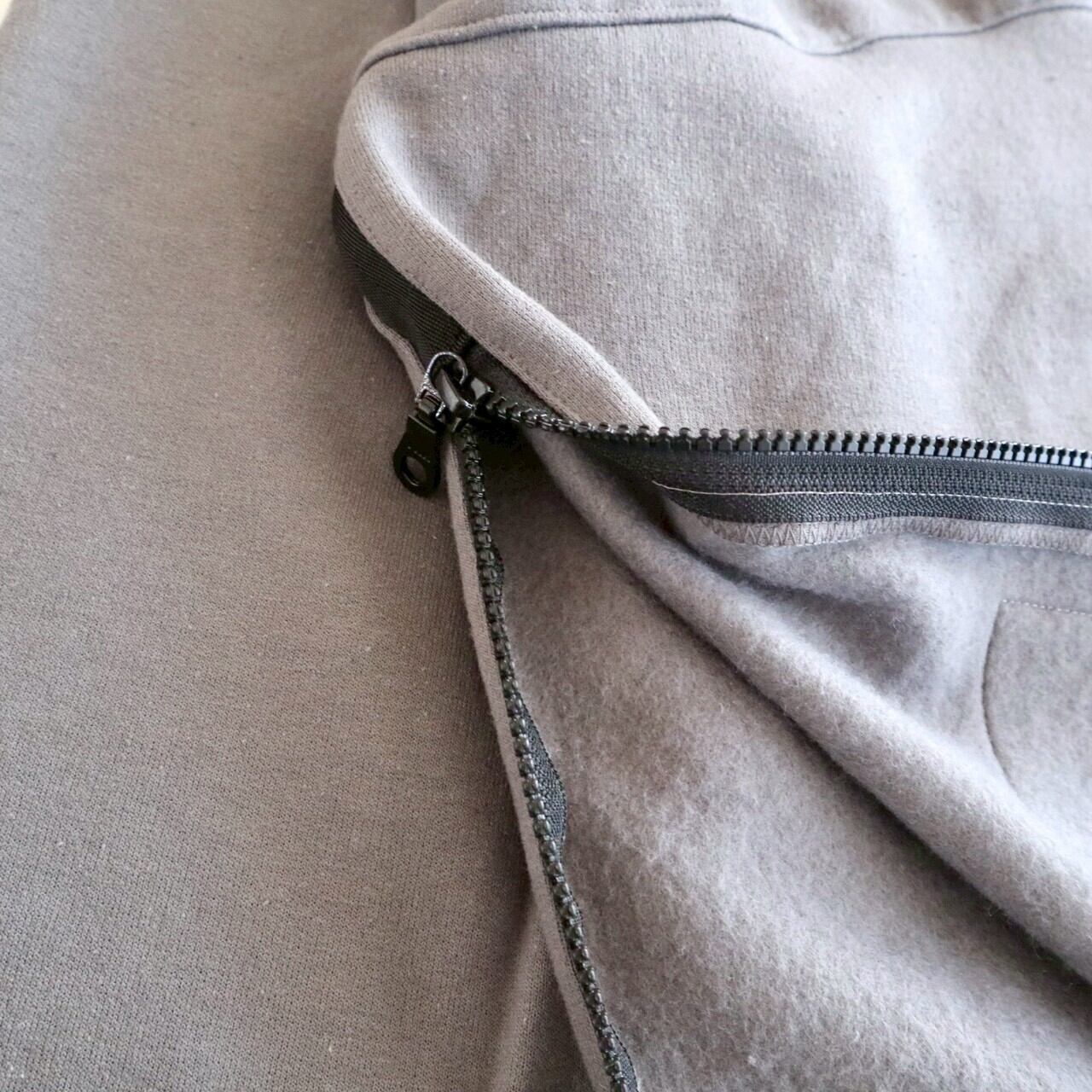 ひろさんに「サイドにファスナーが付いているスウェット作りましょうよ」って言われて早5年、ようやく形になりました。やってみたら上手くできました。