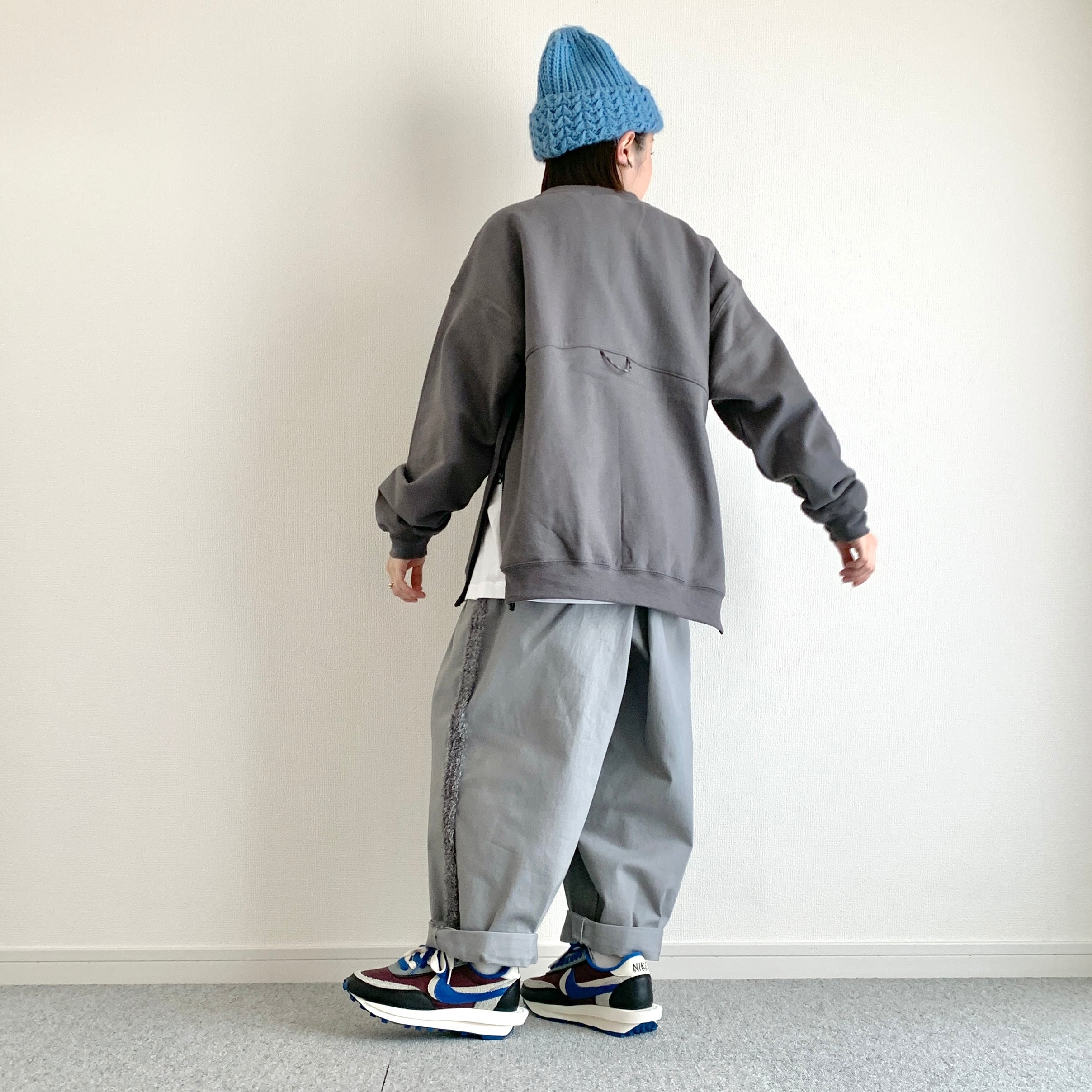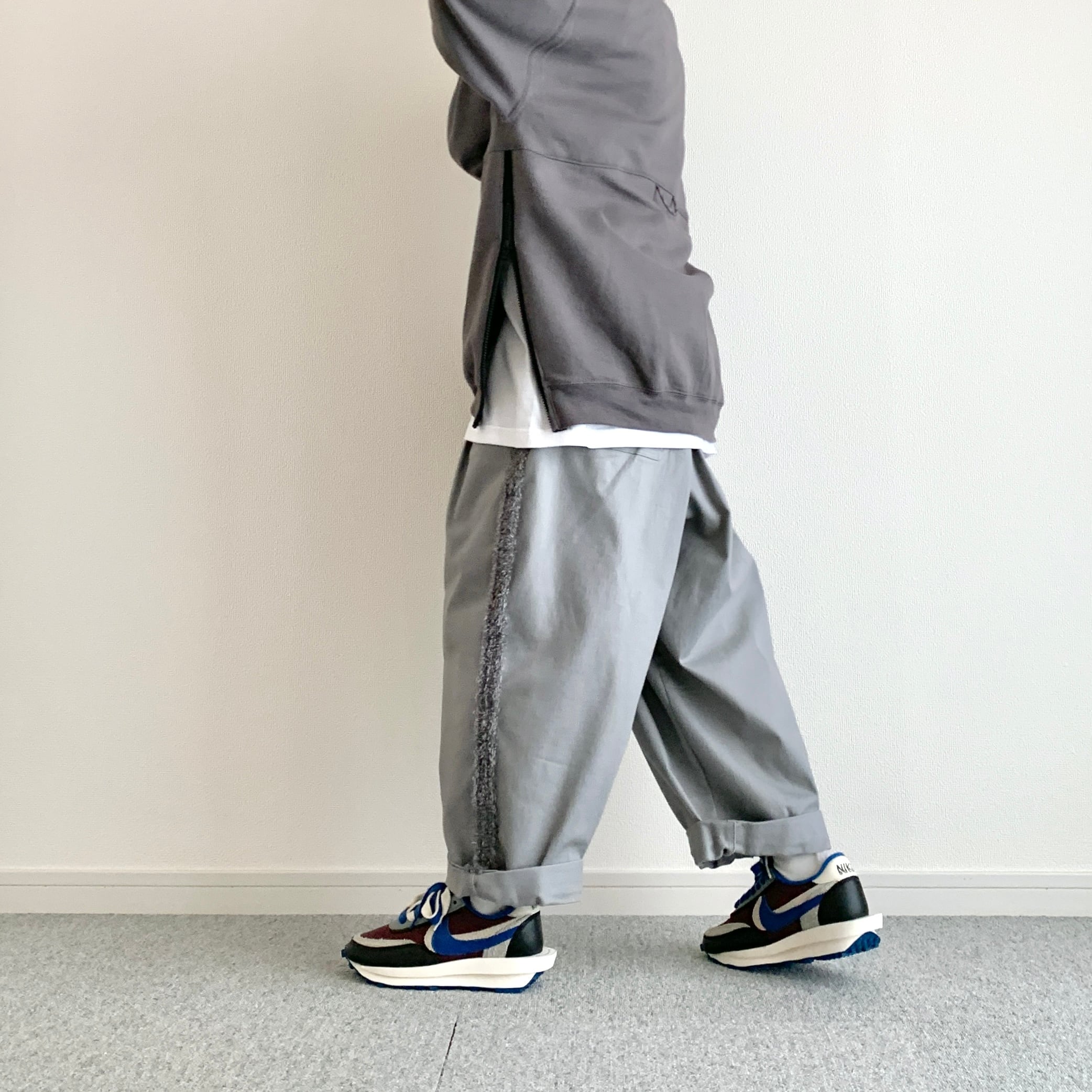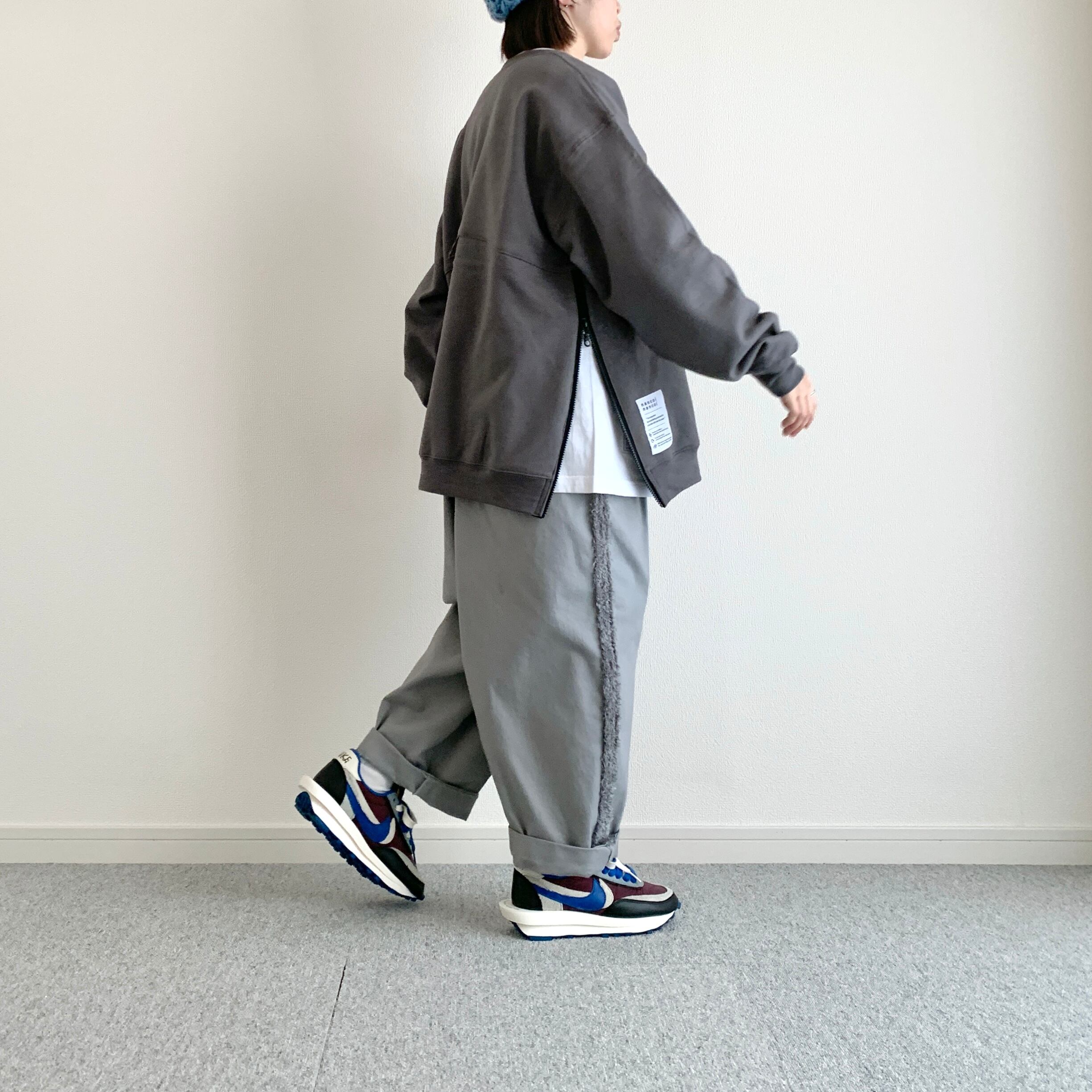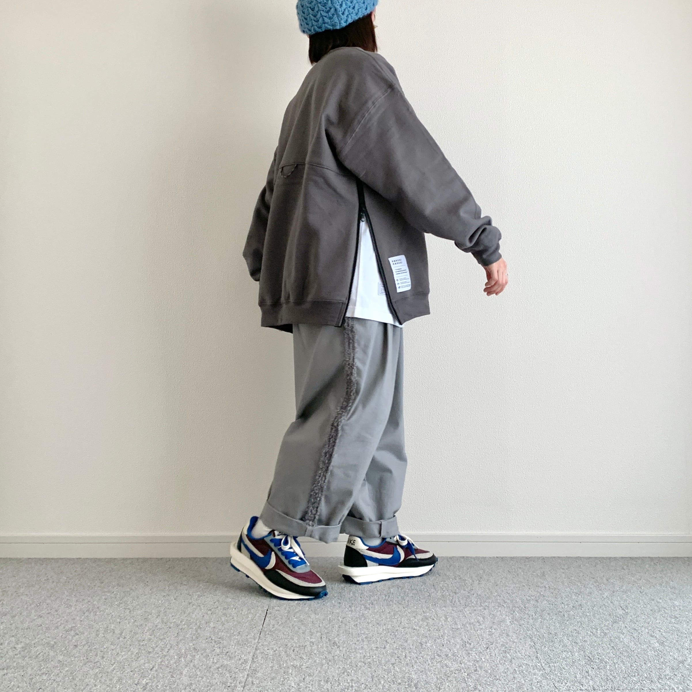 ひろさんに「サイドにファスナーが付いているスウェット作りましょうよ」って言われて早5年、ようやく形になりました。やってみたら上手くできました。