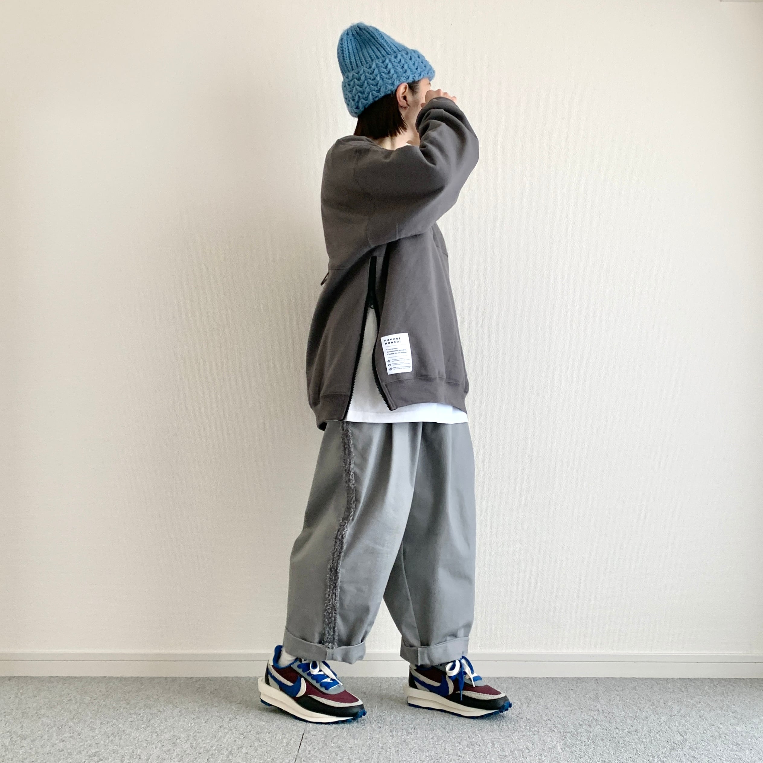 【ちょっとなんか作ってみたスウェット】nancoi nancoi fastener sweat shirts / charcoal