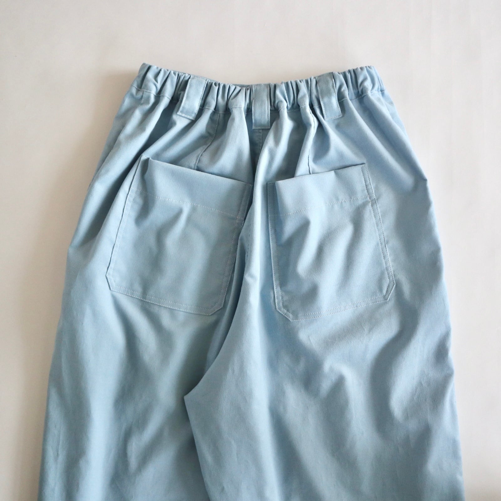 ・ウエスト後ろはゴム使用、前はスッキリとしており、トップスをタックインしてもごわつきにくいです。