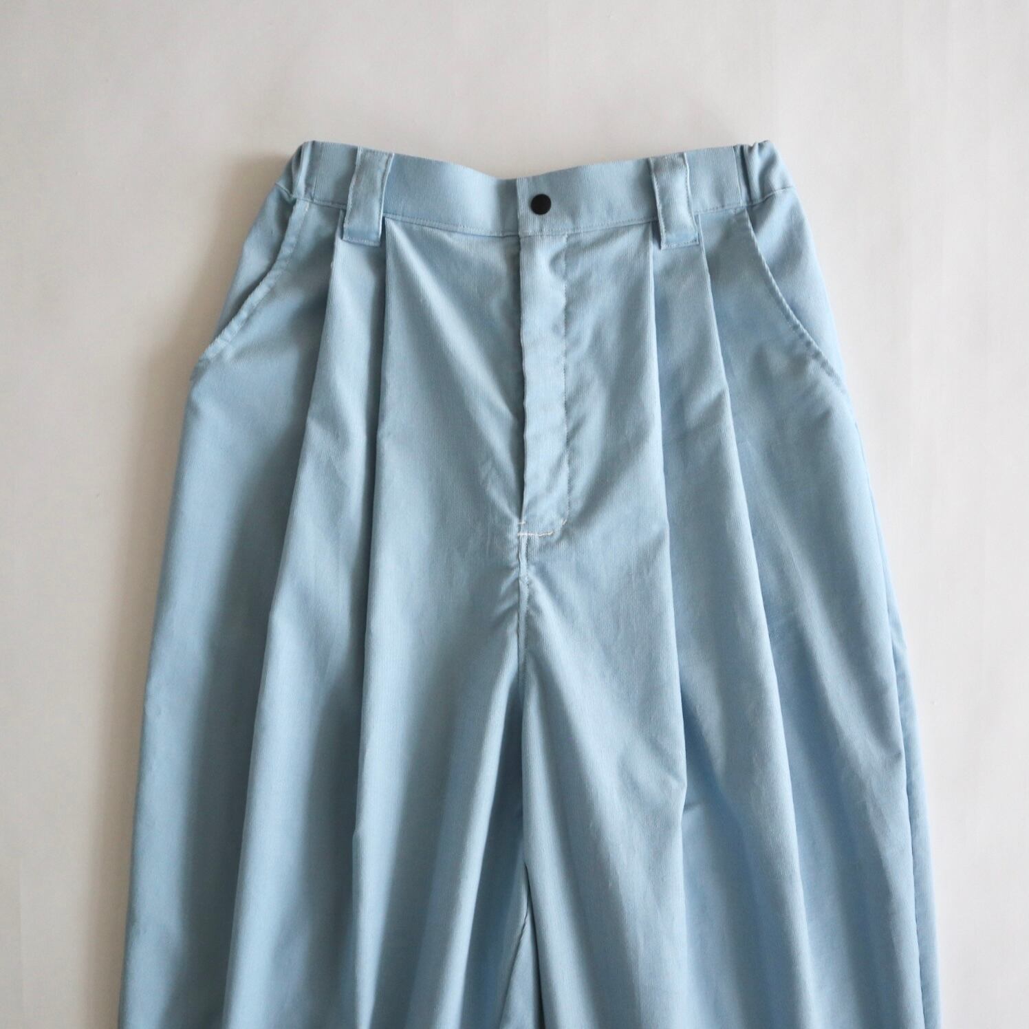 【3月下旬までにお届け】nancoinancoi 2 tuck tapered loose fit corduroy pants / blue