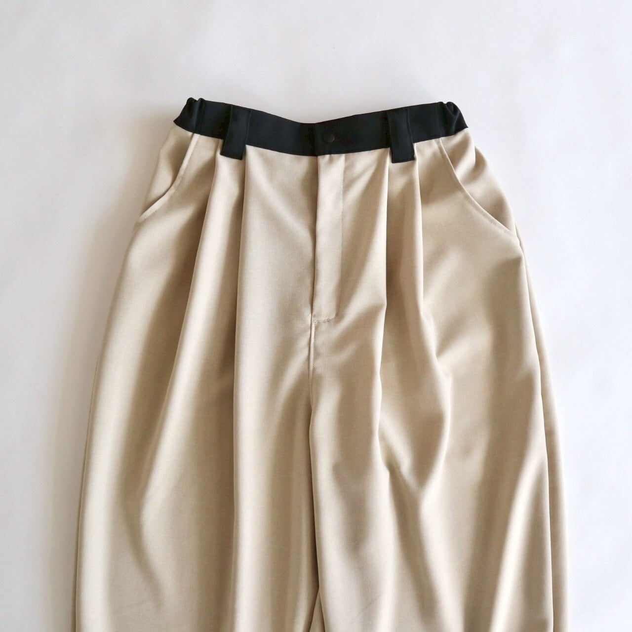 ウエストの部分とベルトループを違う生地の黒色にしてツートーンカラー。