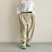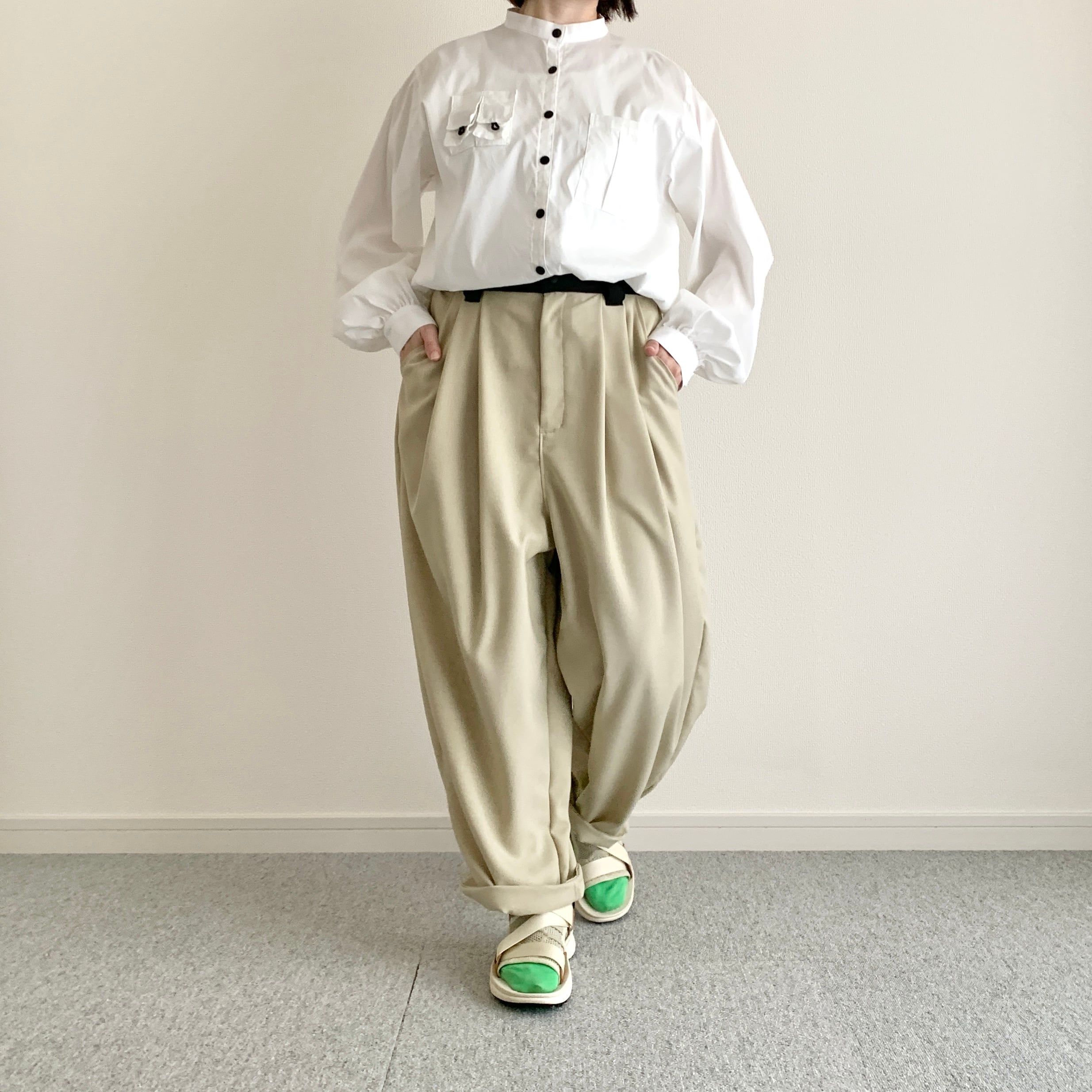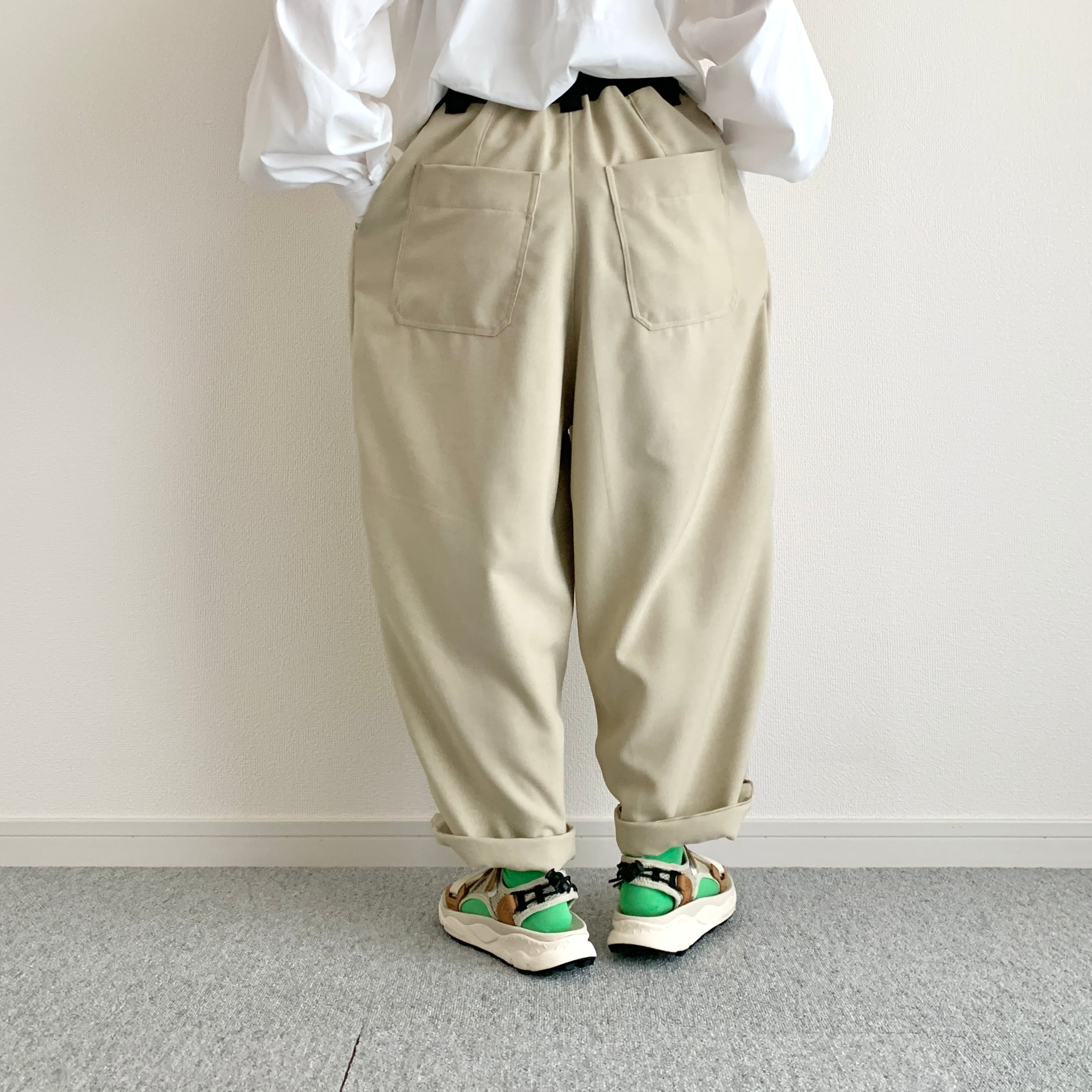 ・ウエスト後ろはゴム使用、前はスッキリとしており、トップスをタックインしてもごわつきにくいです。
