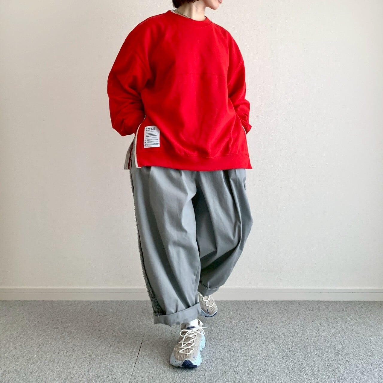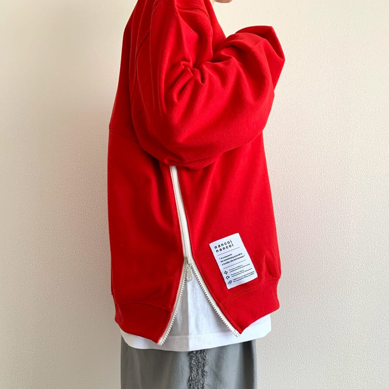 【4月中旬までにお届け】nancoi nancoi fastener sweat shirts / high red