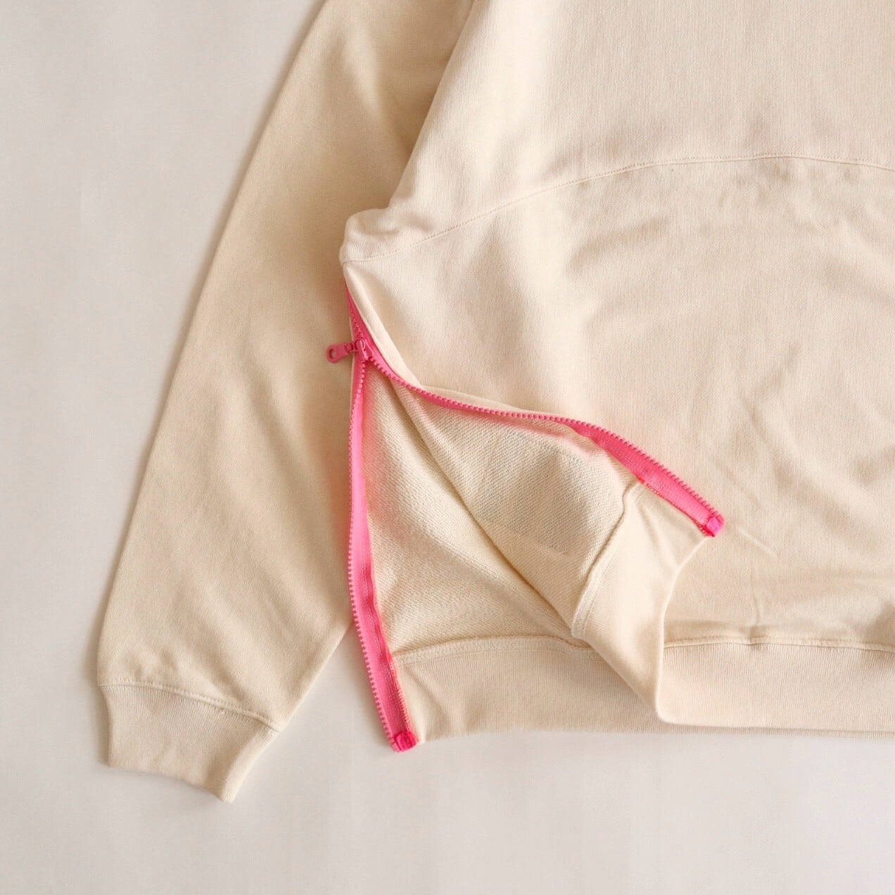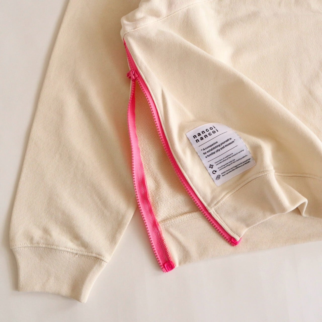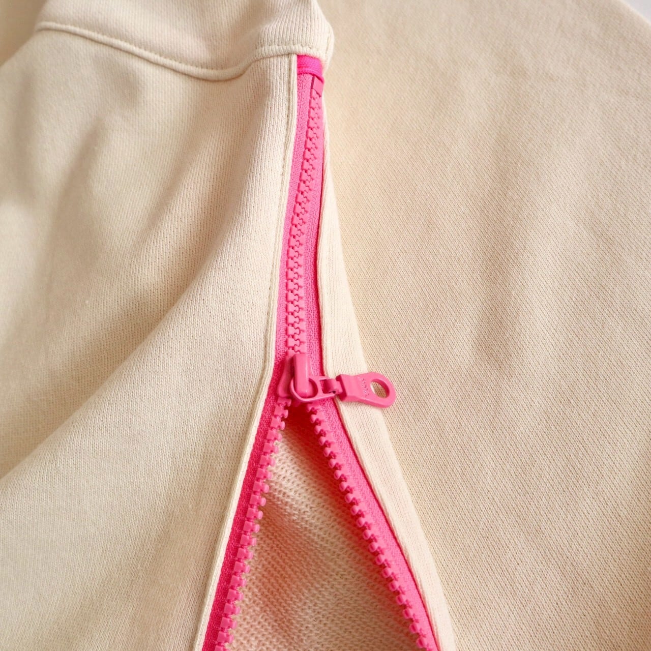 【4月中旬までにお届け】nancoi nancoi fastener sweat shirts / natural x neon pink