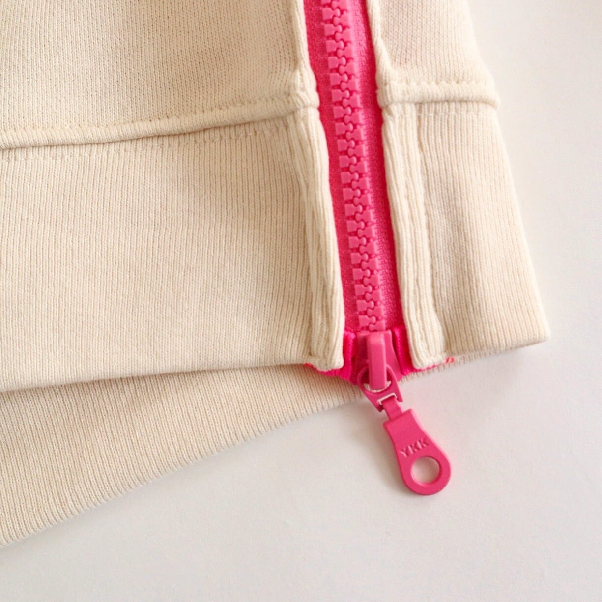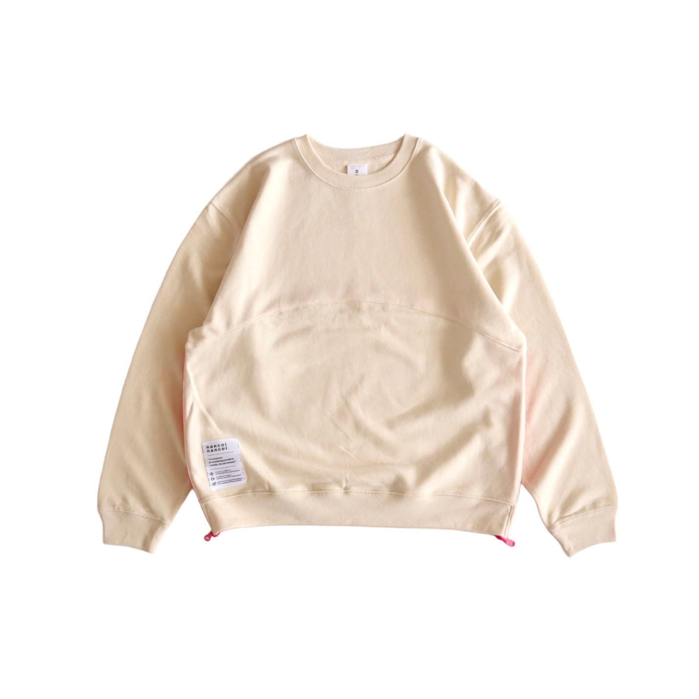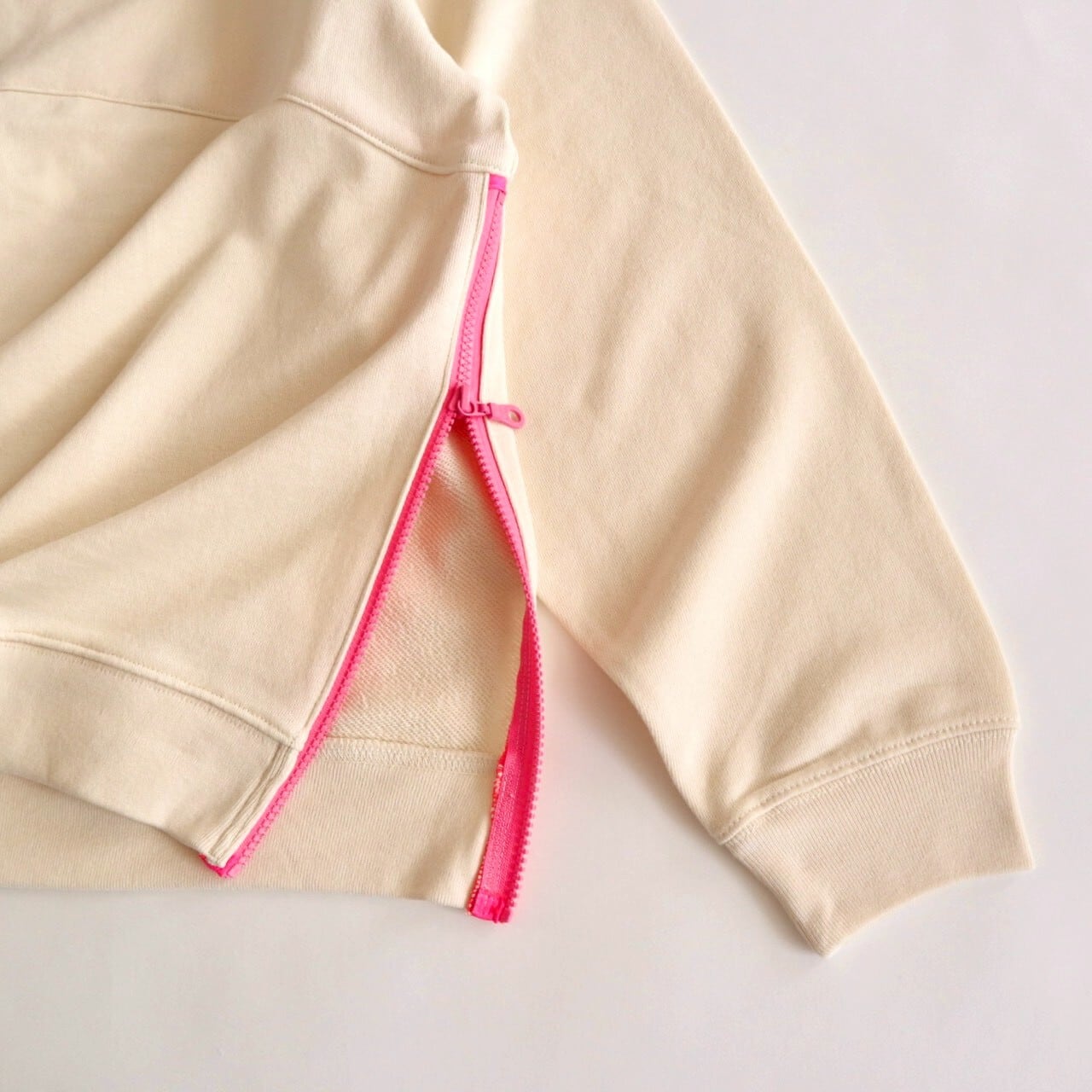 【4月中旬までにお届け】nancoi nancoi fastener sweat shirts / natural x neon pink