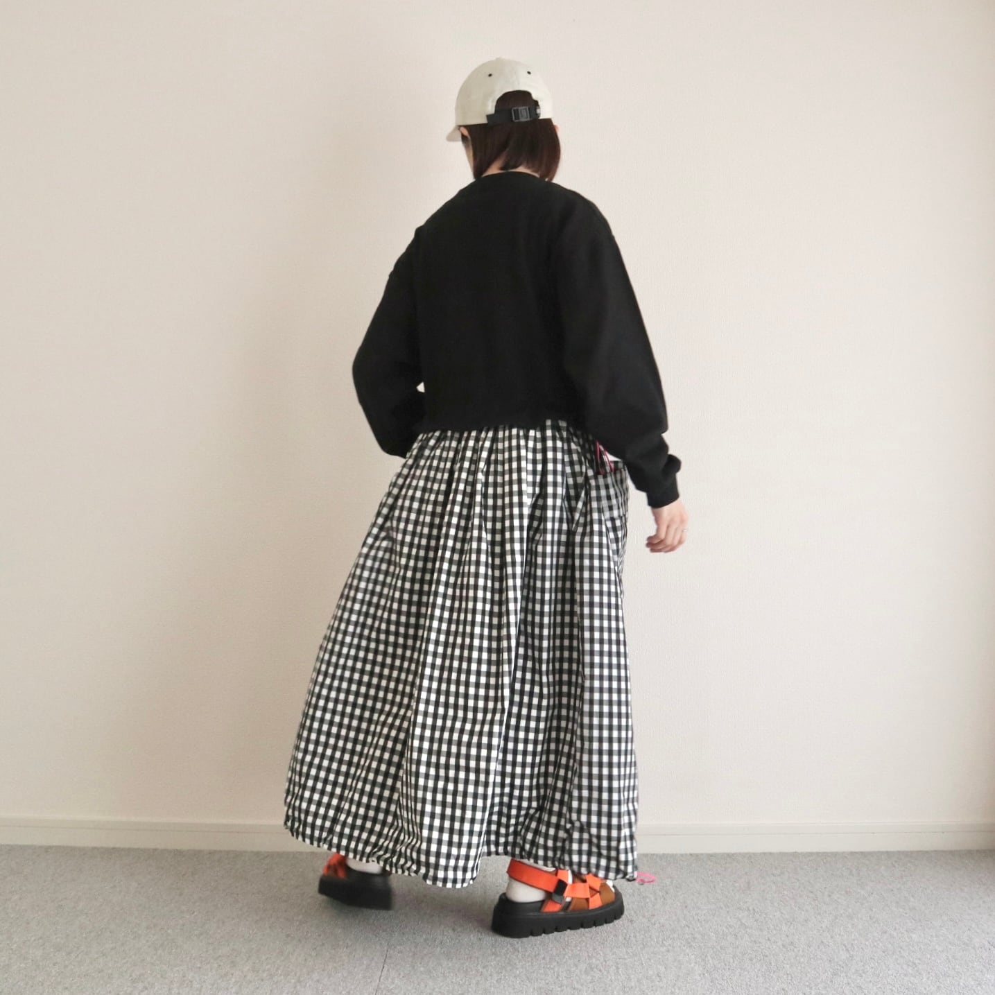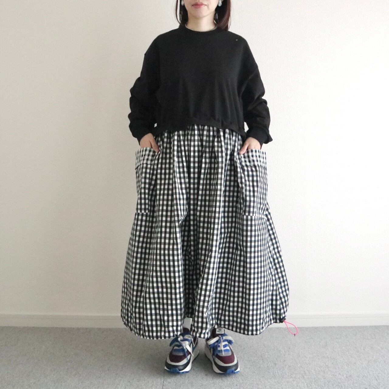 結局可愛いホワイトブラックのギンガムチェック生地を切り返してドッキング