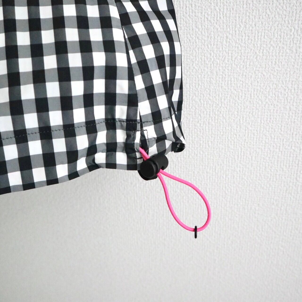 ウエスト部分と裾にドローコードを入れているのでコードを絞るとシルエットが変えられます
