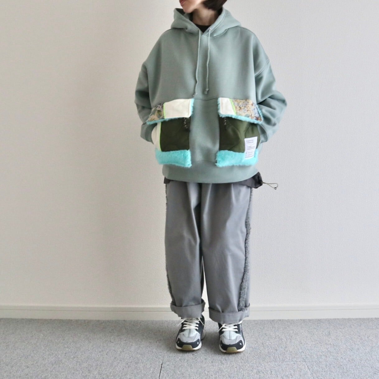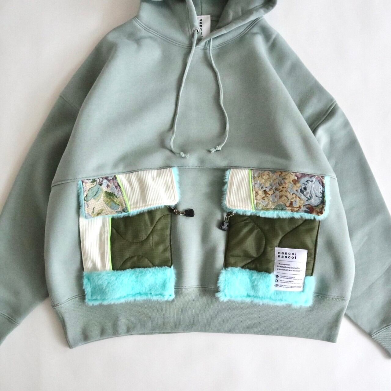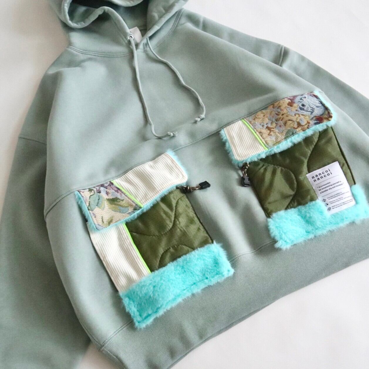 1点もののパーカーです。1点ものなので餃子のタグが付いてます。