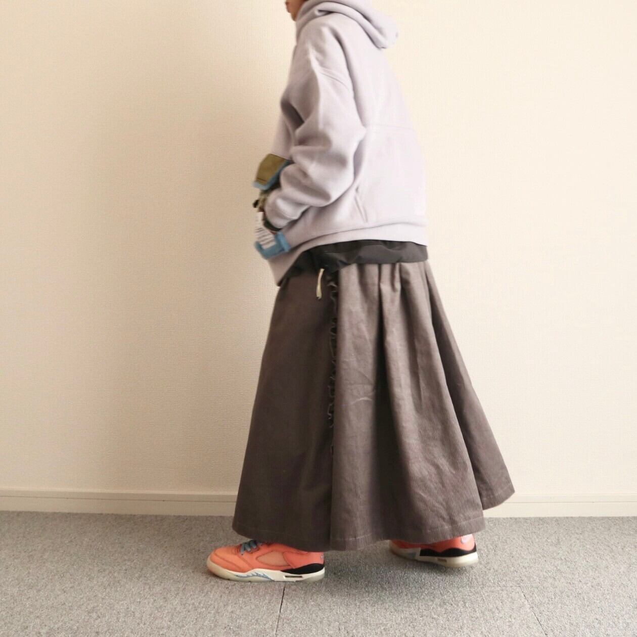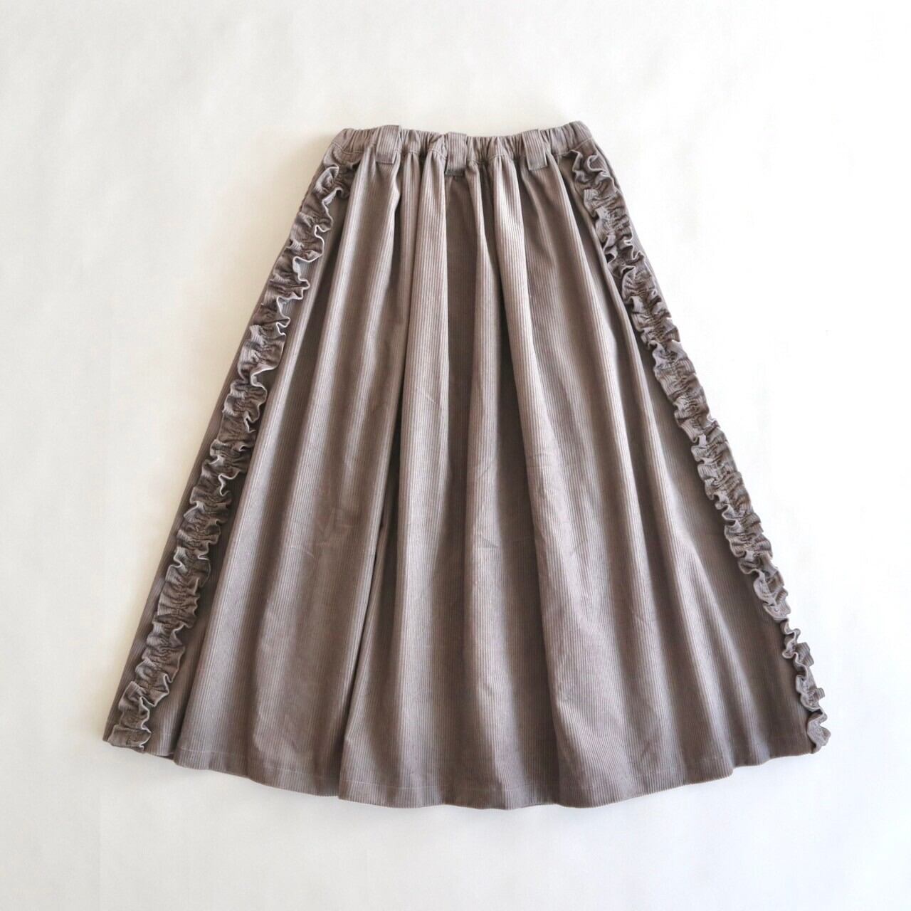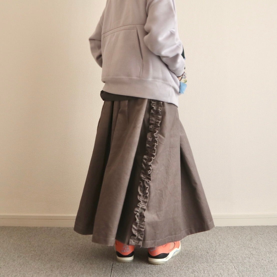 コーデュロイ生地をたっぷり使っているので暖かみのあるスカートです。