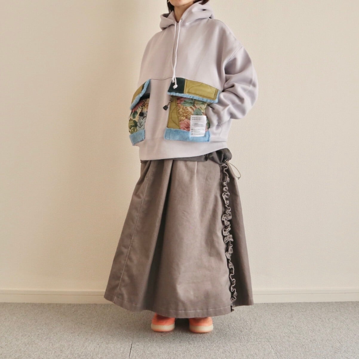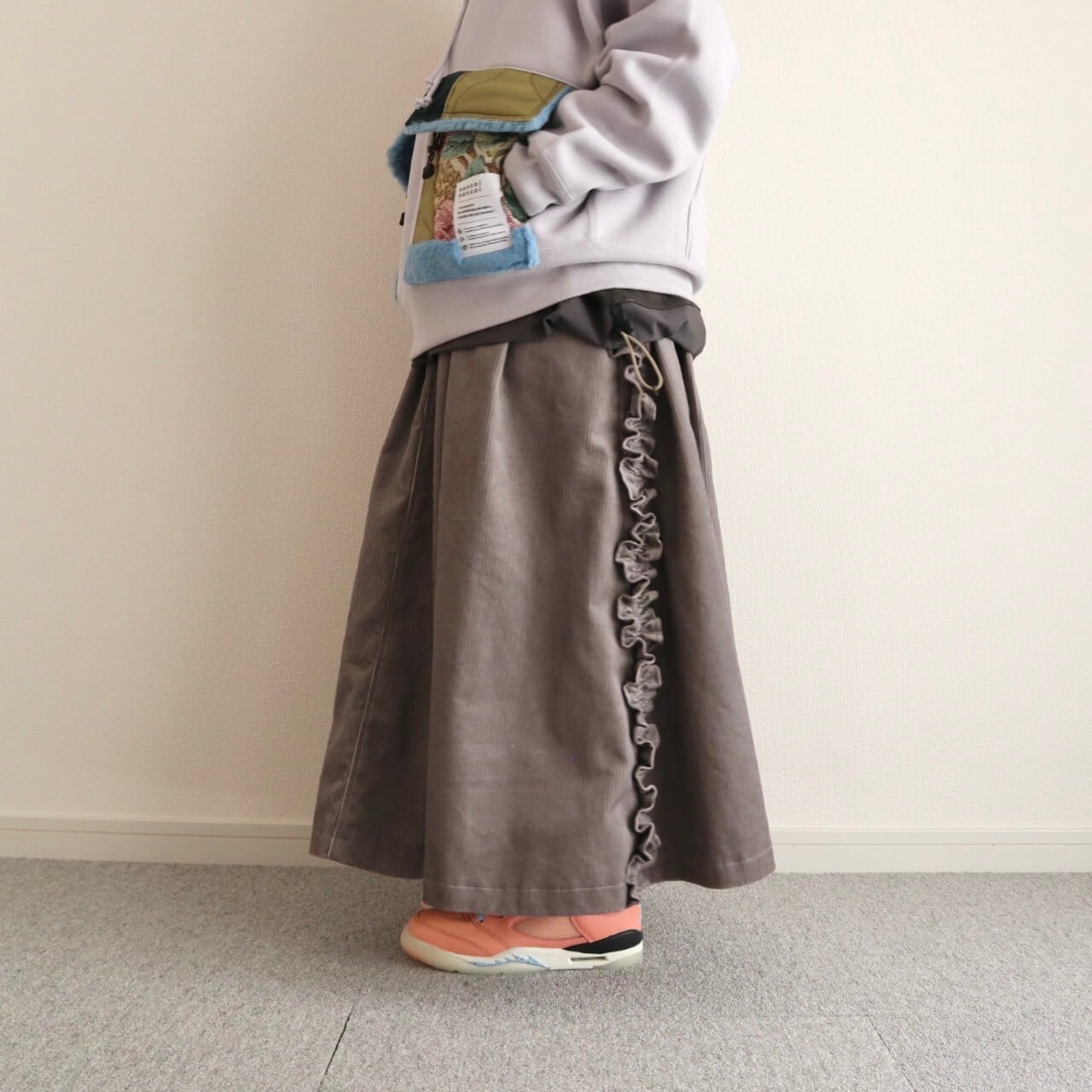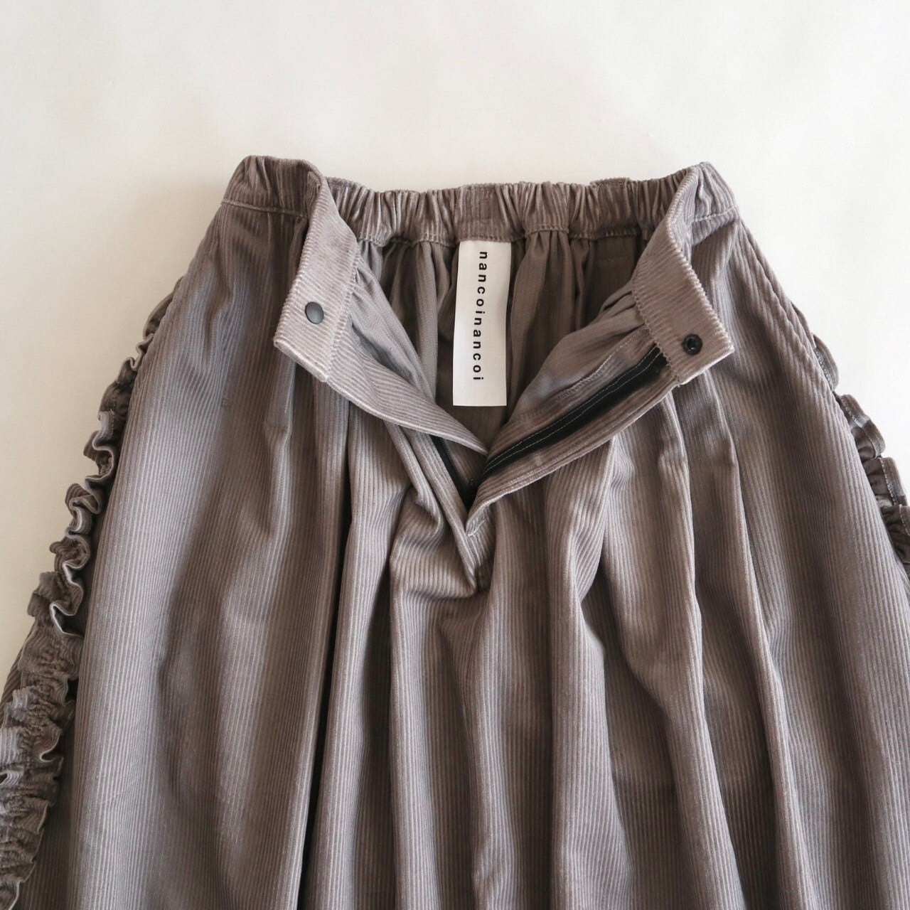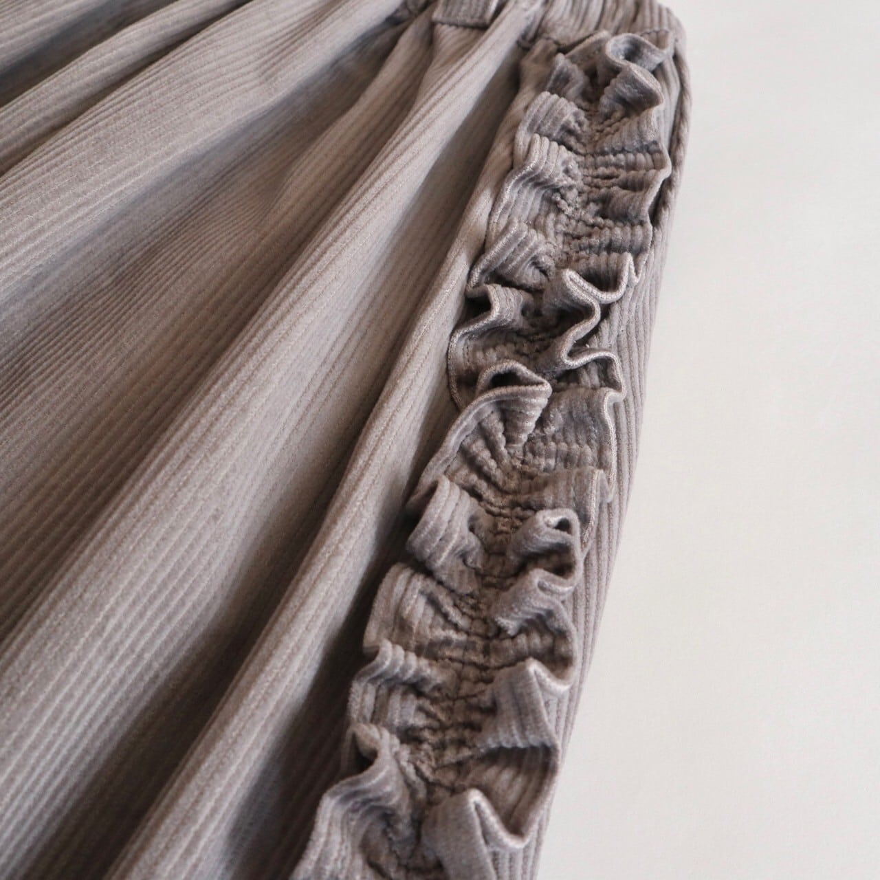コーデュロイ生地をたっぷり使っているので暖かみのあるスカートです。